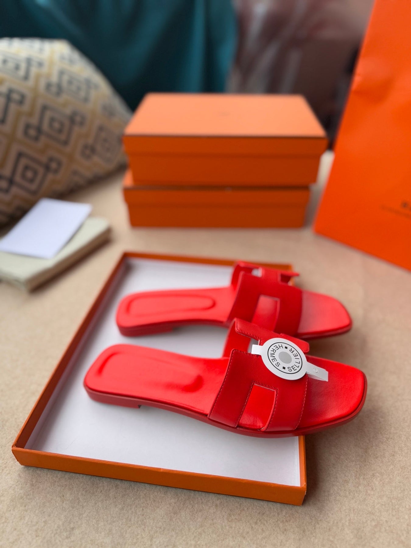 0RAN SANDALS IN CHERRY RED CALFSKIN