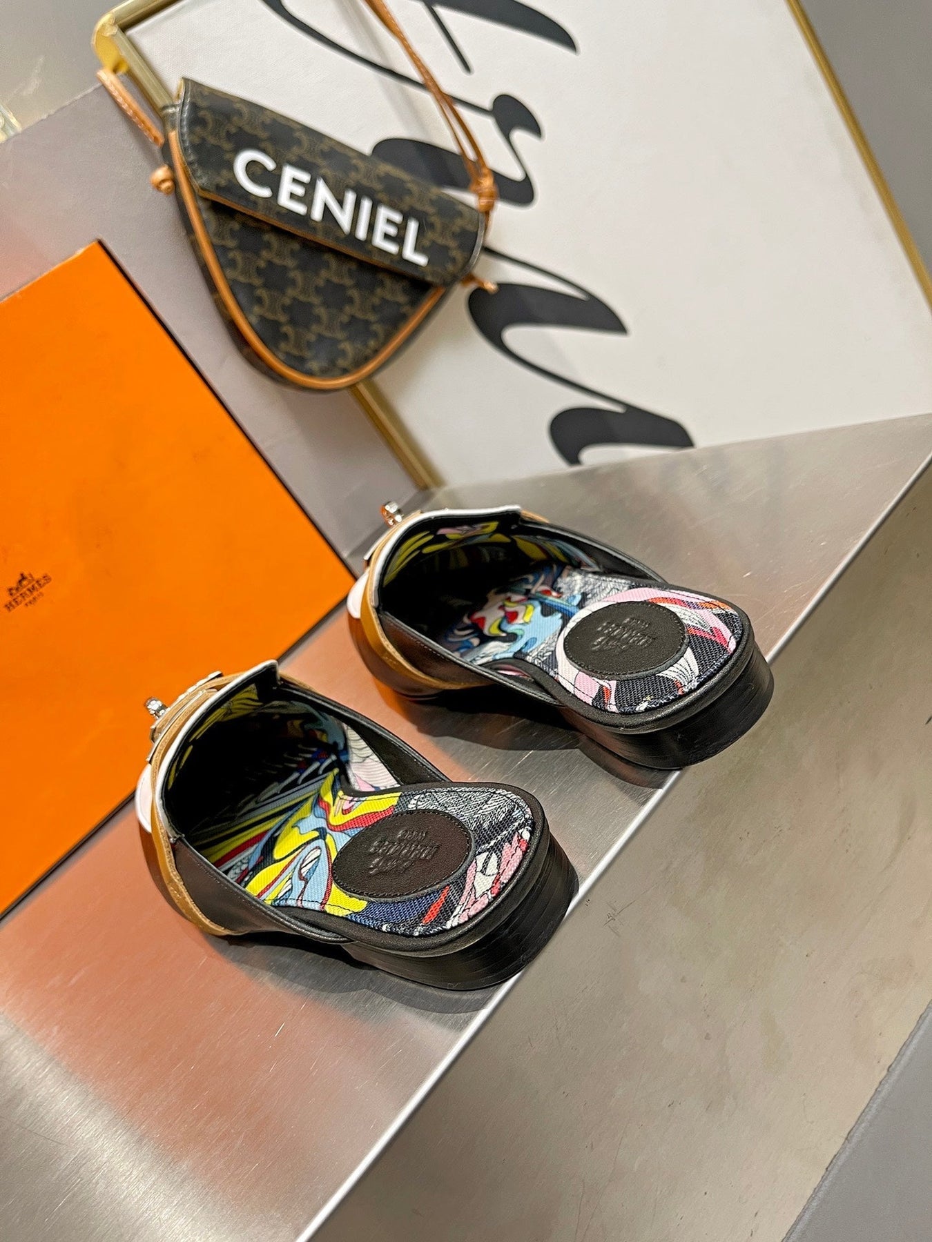 0Z MULE WHITE AND BLACK CALFSKIN WITH PATTERN