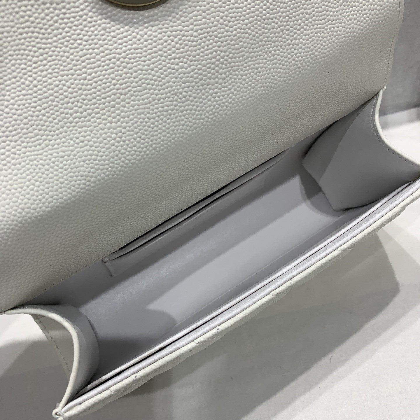 23P Flap Bag 19cm White Caviar Gold Hardware