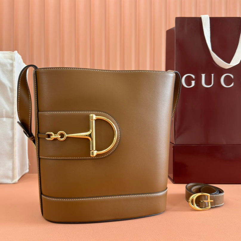 73 MEDIUM BUCKET BAG 27.5 IN BROWN SMOOTH CALFSKIN