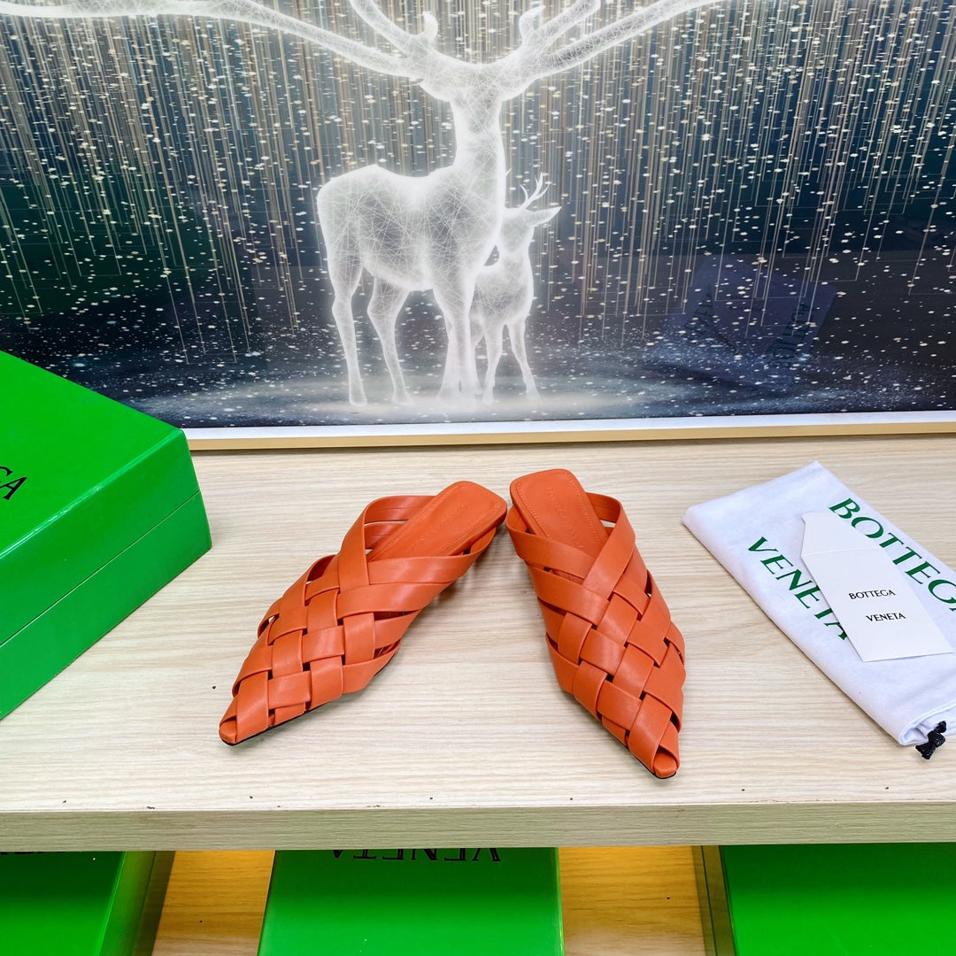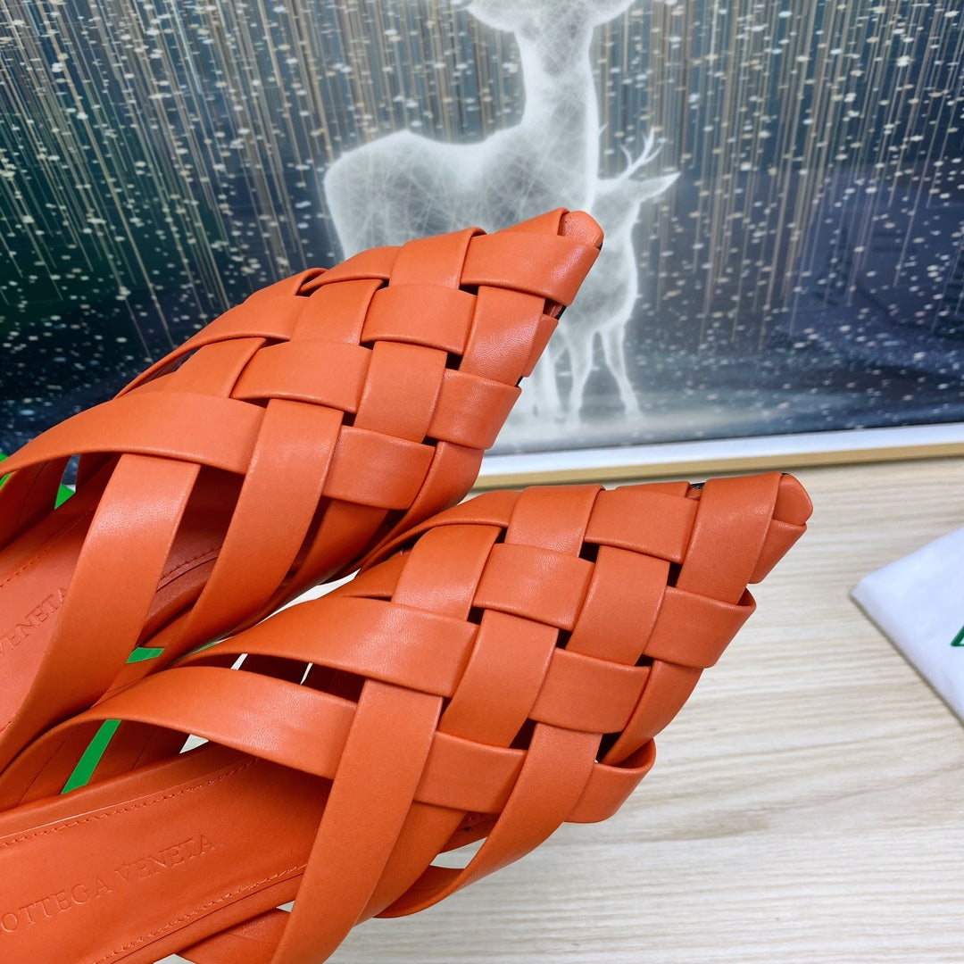 ALFIE LEATHER FLAT MULES IN VIVID ORANGE PATENT CALFSKIN WITH WOVEN DESIGN