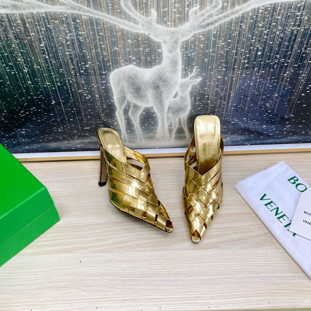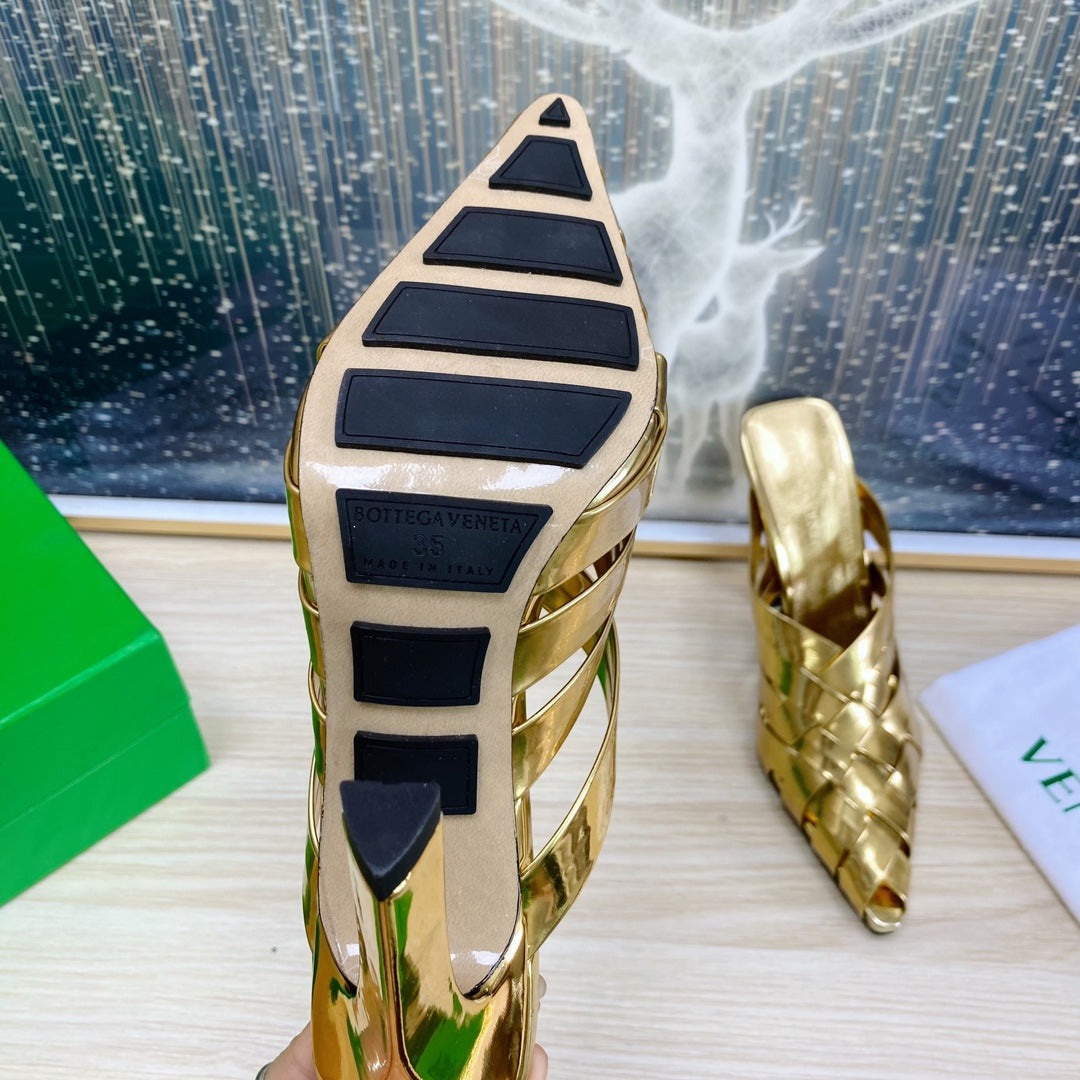 ALFIE LEATHER HIGH MULES IN GOLD PATENT CALFSKIN WITH WOVEN DESIGN
