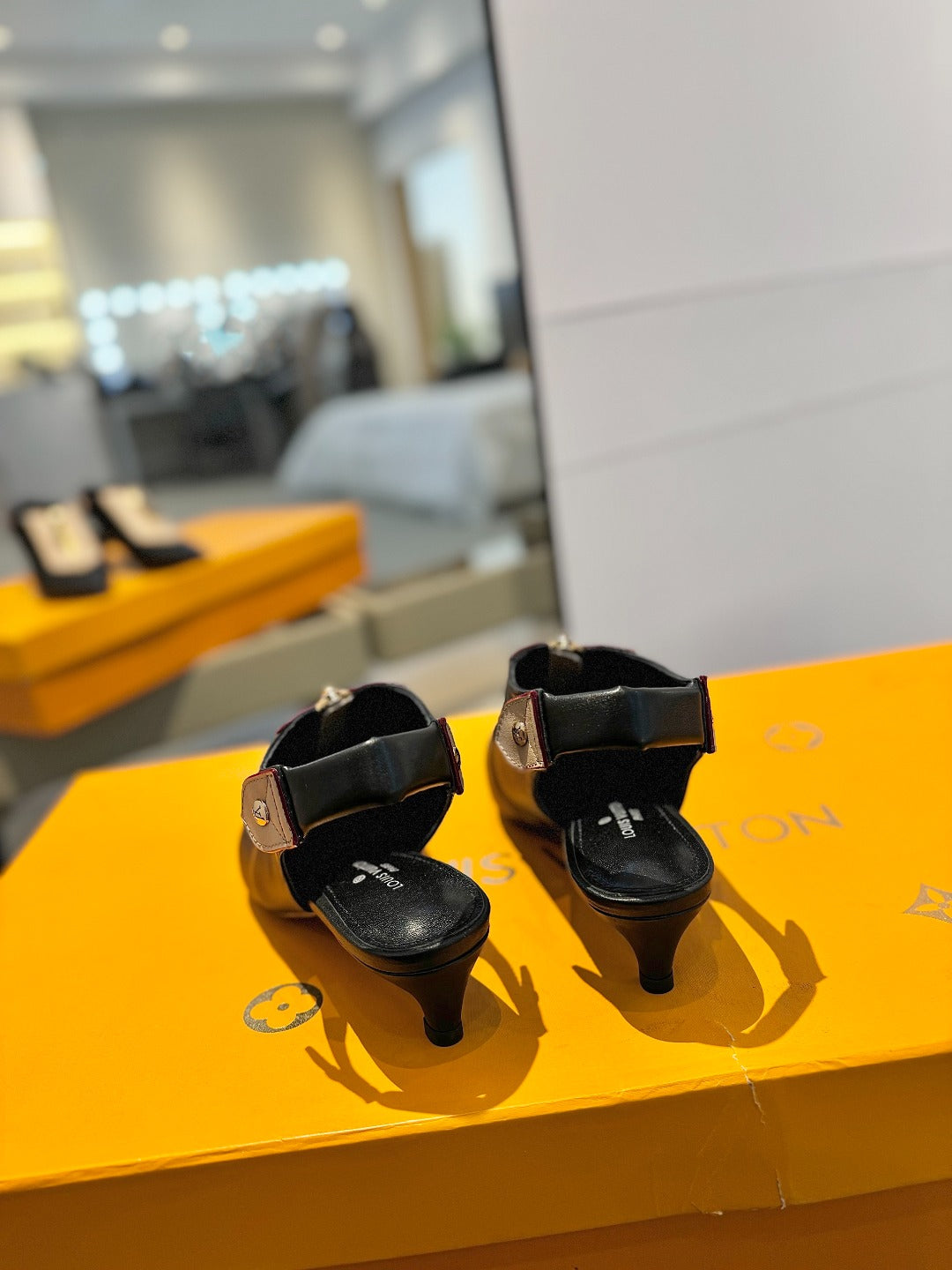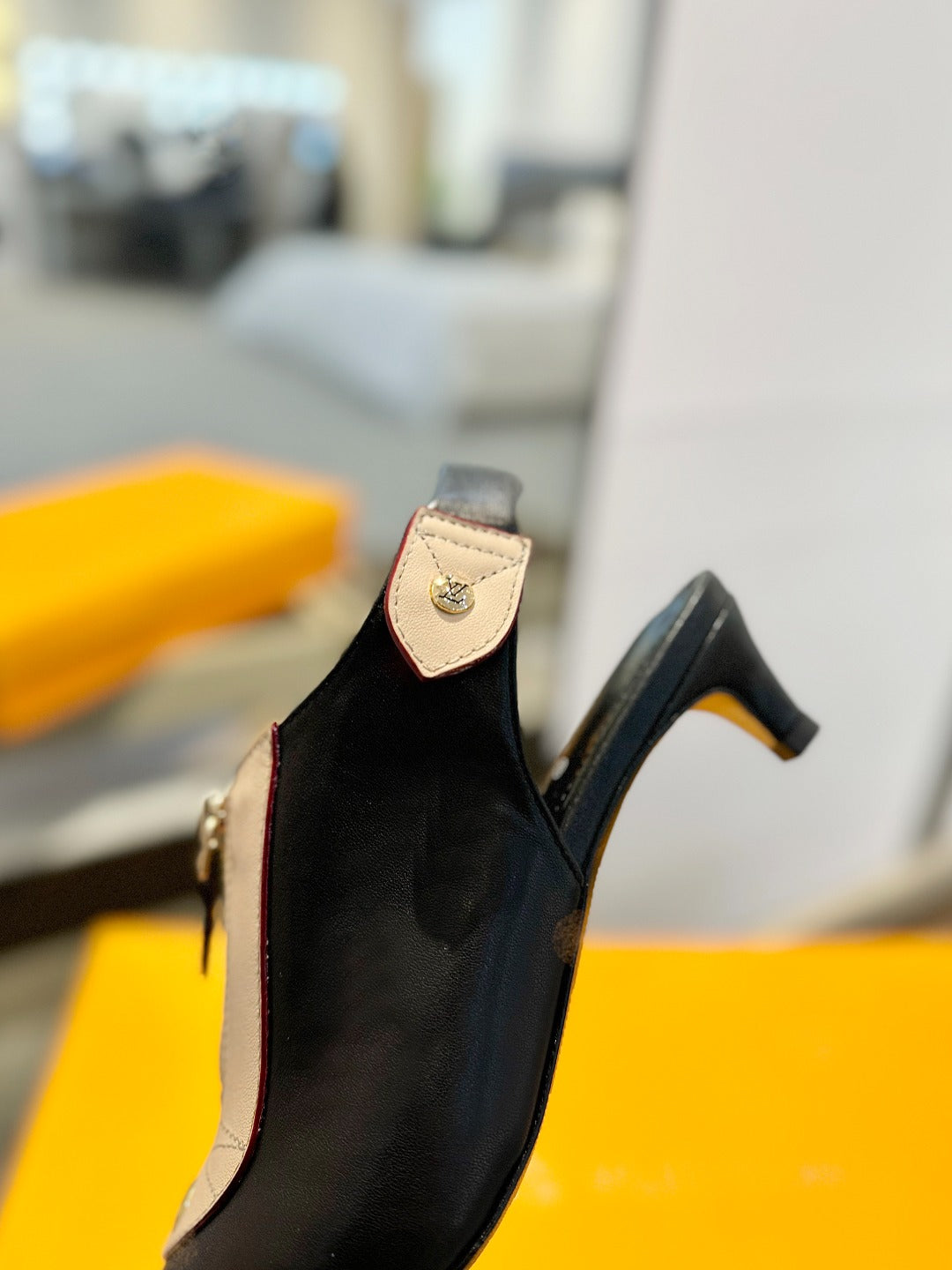 ALLURE HIGH 4.5 CM SLINGBACK IN BLACK MIX SAND BROWN CALFSKIN