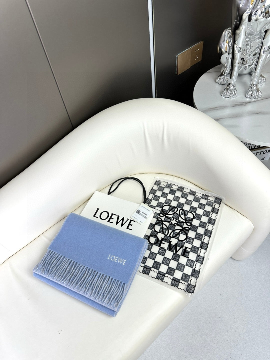 ANAGRAM SCARF 182 CM IN CERULEAN BLUE WOOL AND CASHMERE 408526