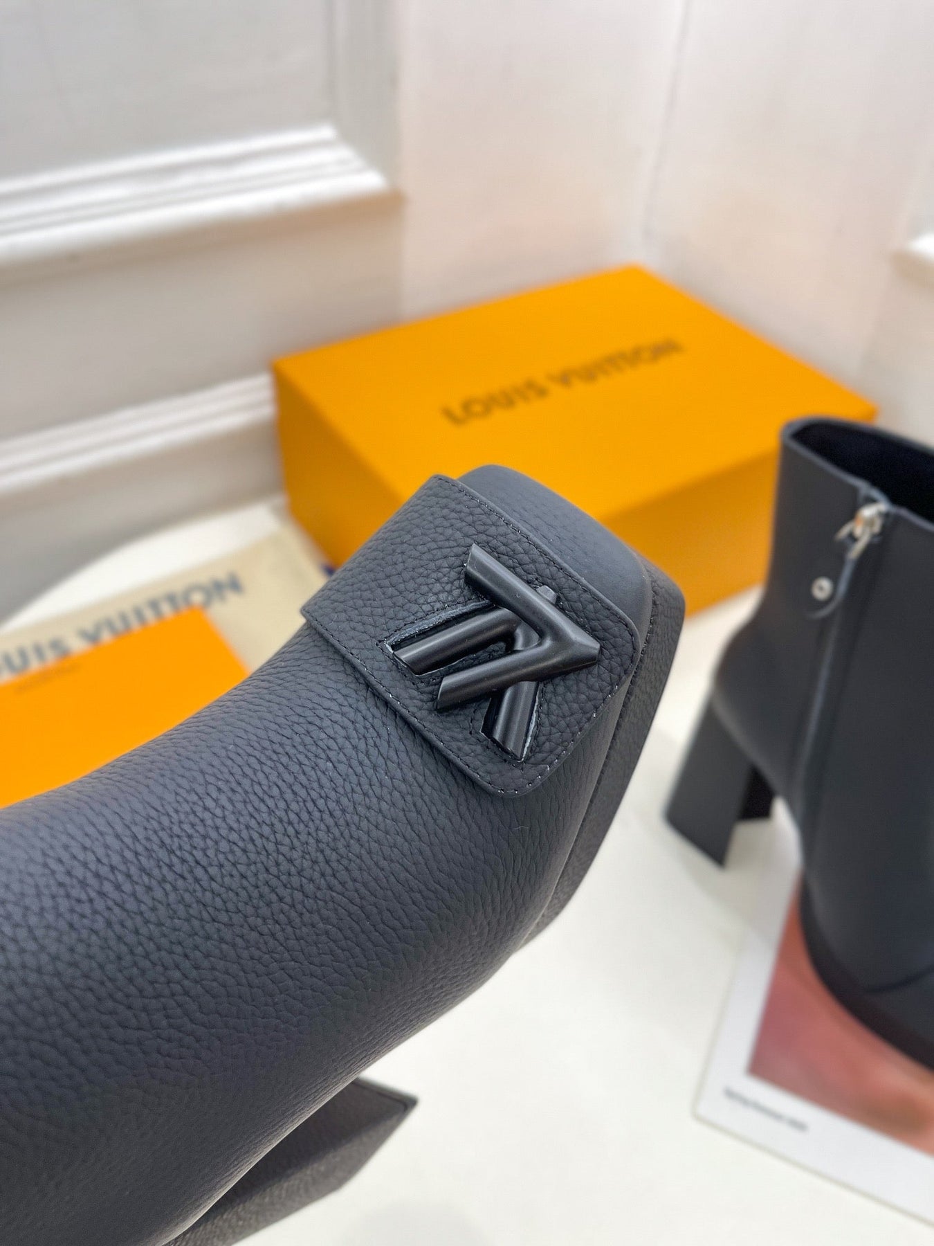 ANKLE BOOTS BLOCK HEEL 9 CM IN BLACK PEPPLE CALFSKIN