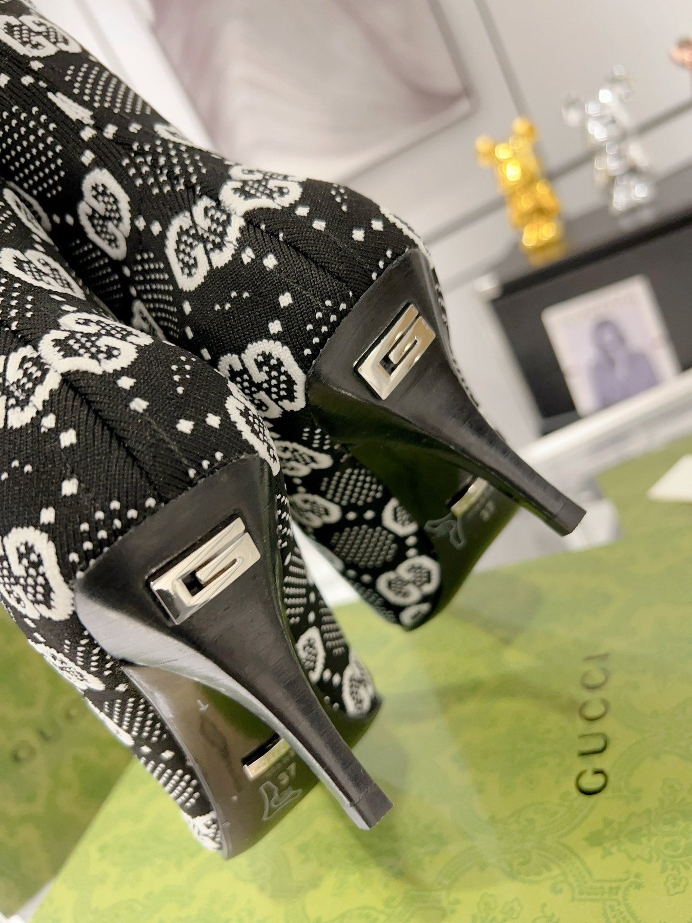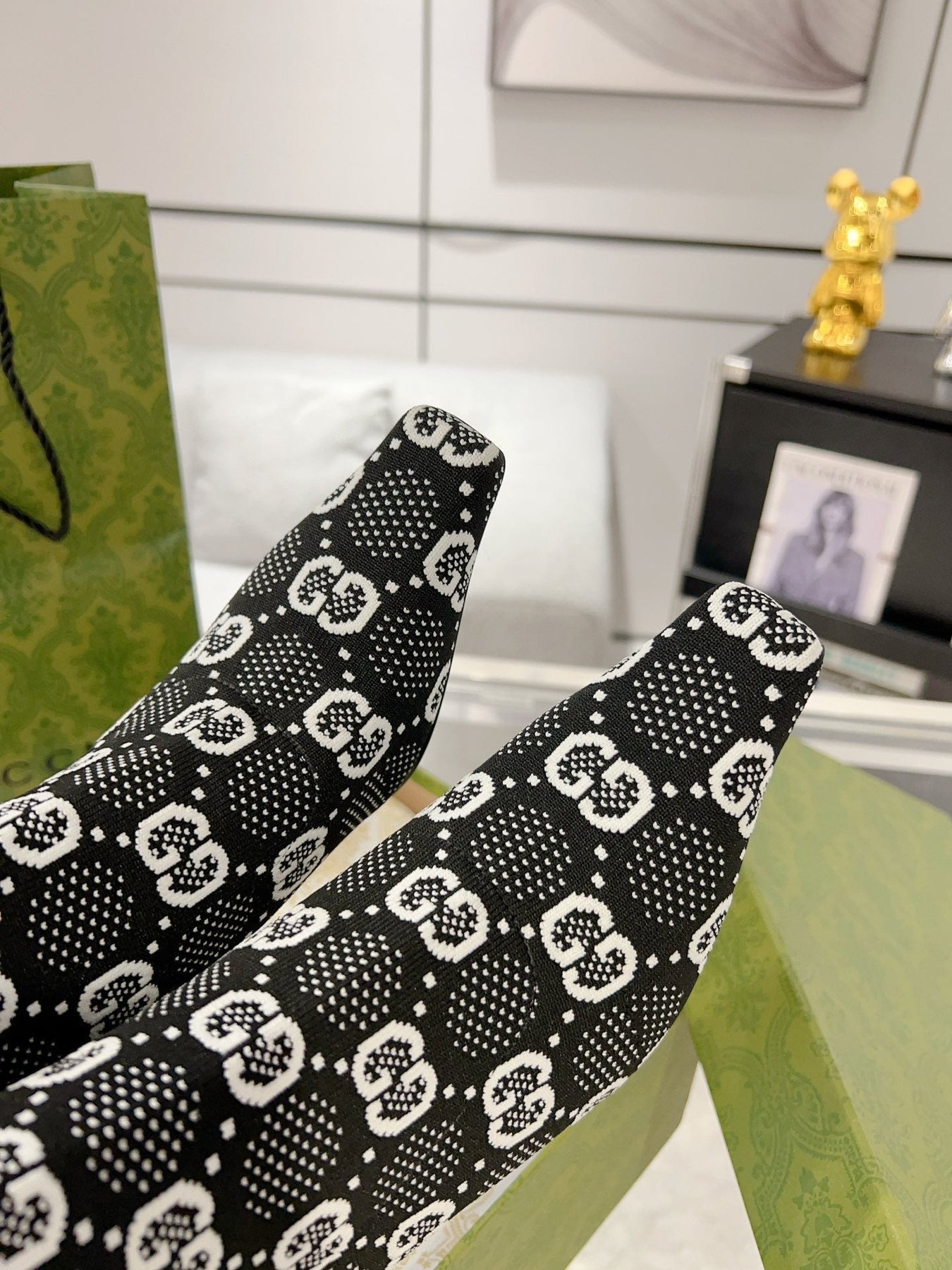 ANKLE BOOTS IN BLACK MIX WHITE KNITTED FABRIC WITH RETRO STYLE