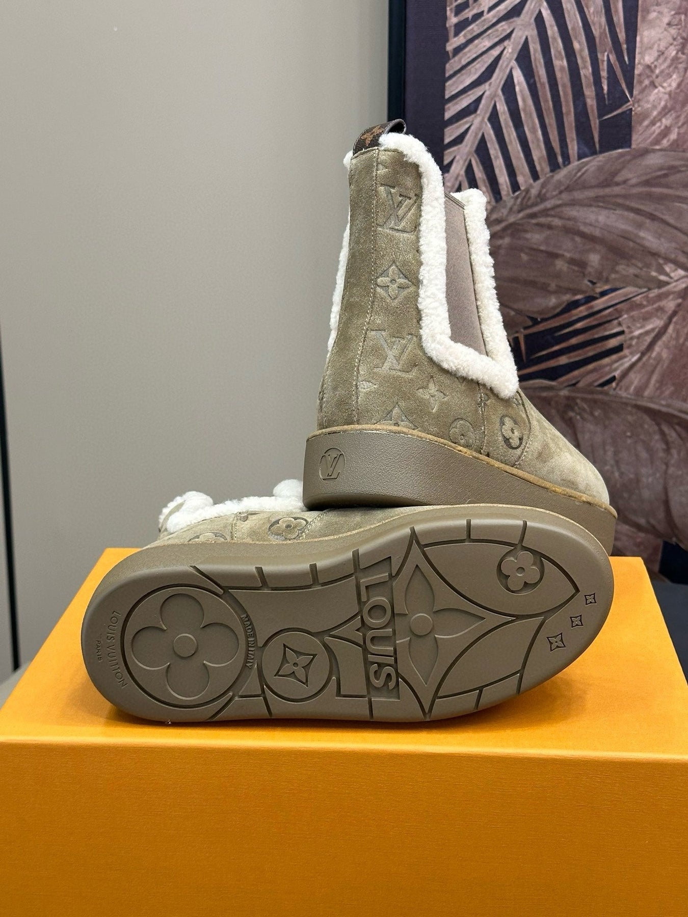 ASPEN CHELSEA ANKLE BOOTS IN ECRU BEIGE MONOGRAM-DEBOSSED SUEDE