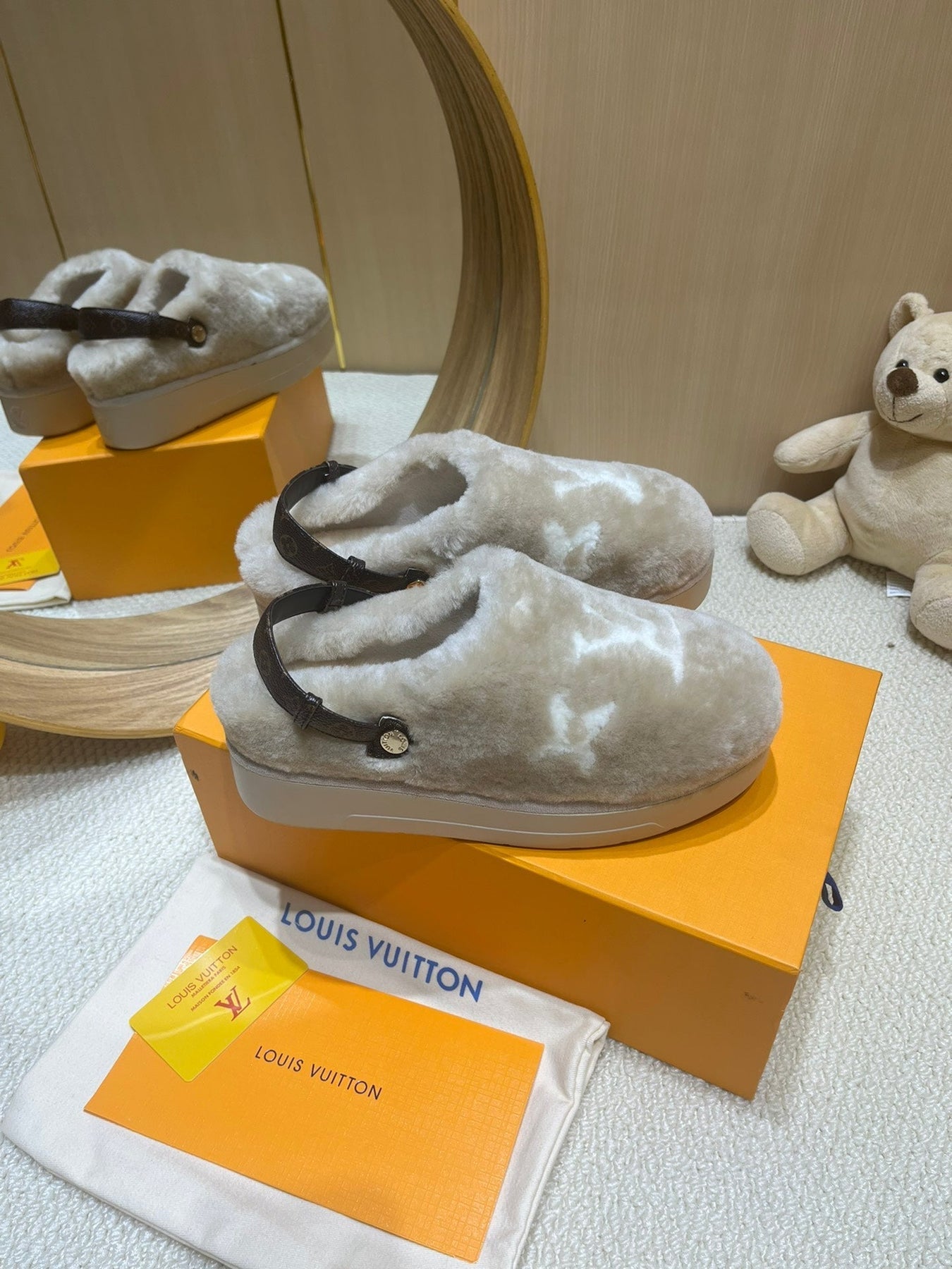 ASPEN COMFORT CLOG IN KHAKI BEIGE MIX WHITE FLEECE