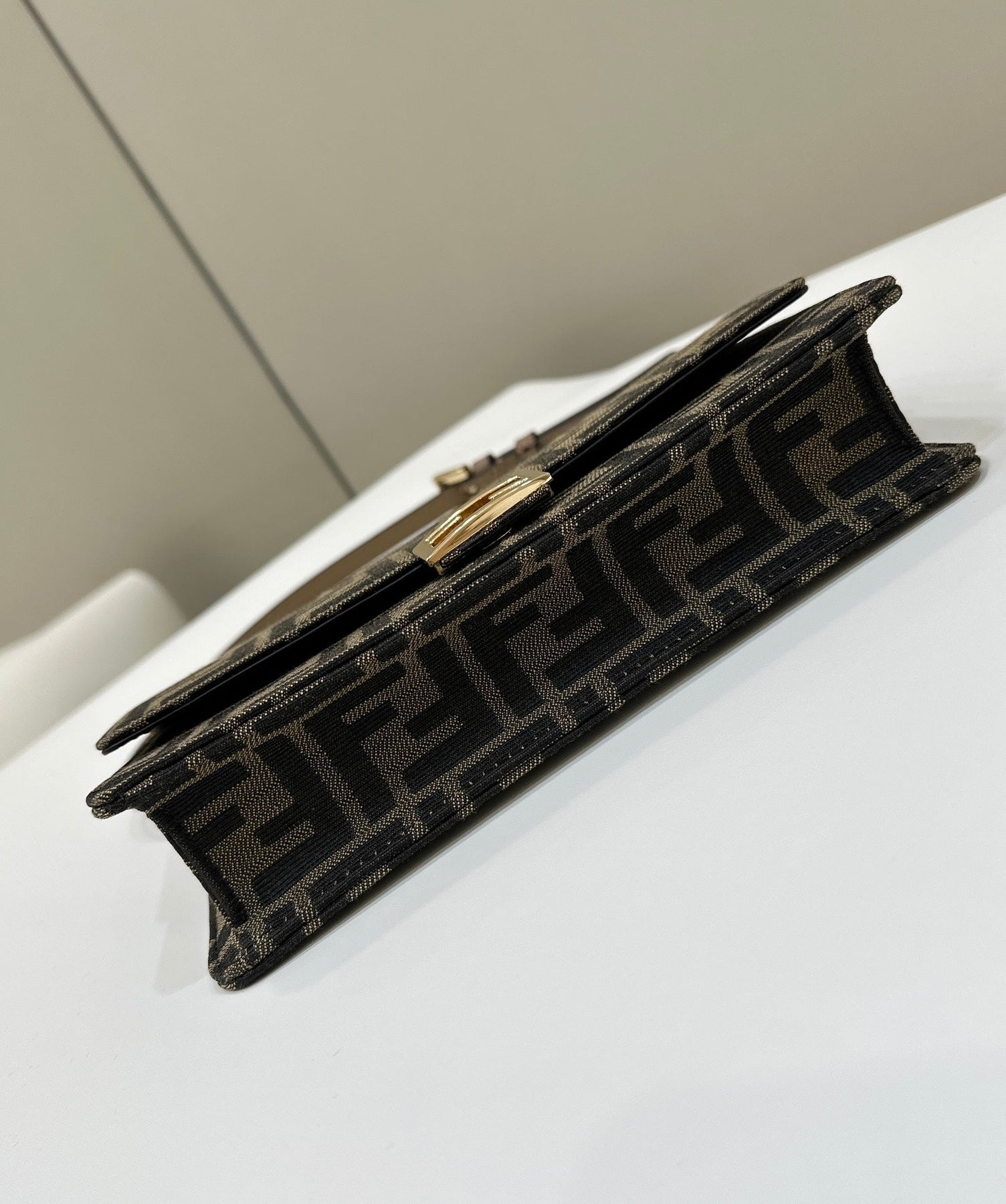 BAGUETTE CHAIN MIDI 21 IN BROWN MIX BLACK MONOGRAM JACQUARD FABRIC BAG