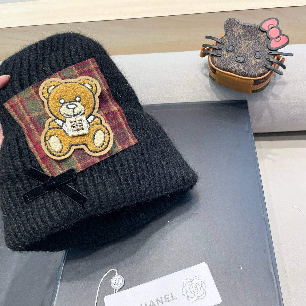 BEANIE HAT IN BLACK WOOL WITH BOW 421254