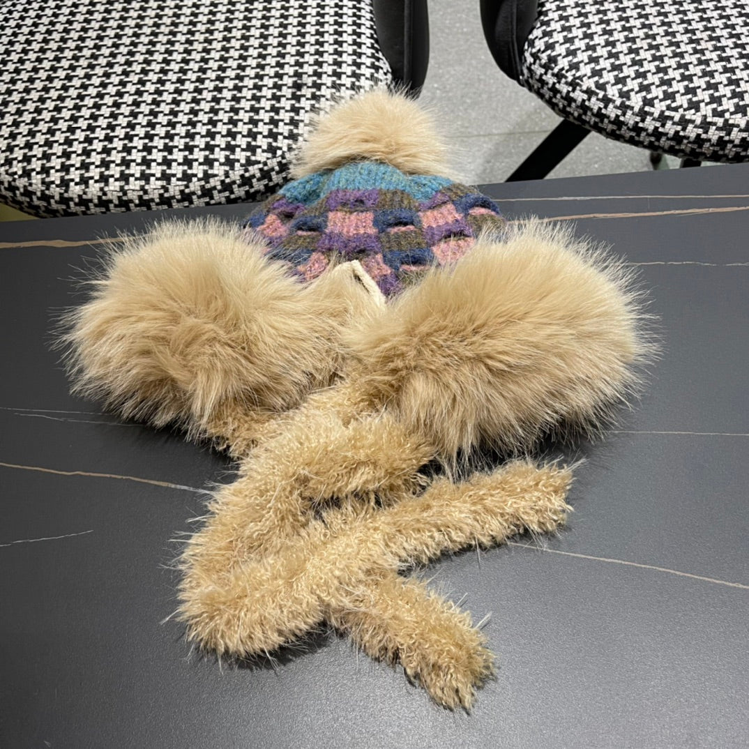 BEANIE HAT IN COLORFUL WOOL AND RABBIT FUR 392115