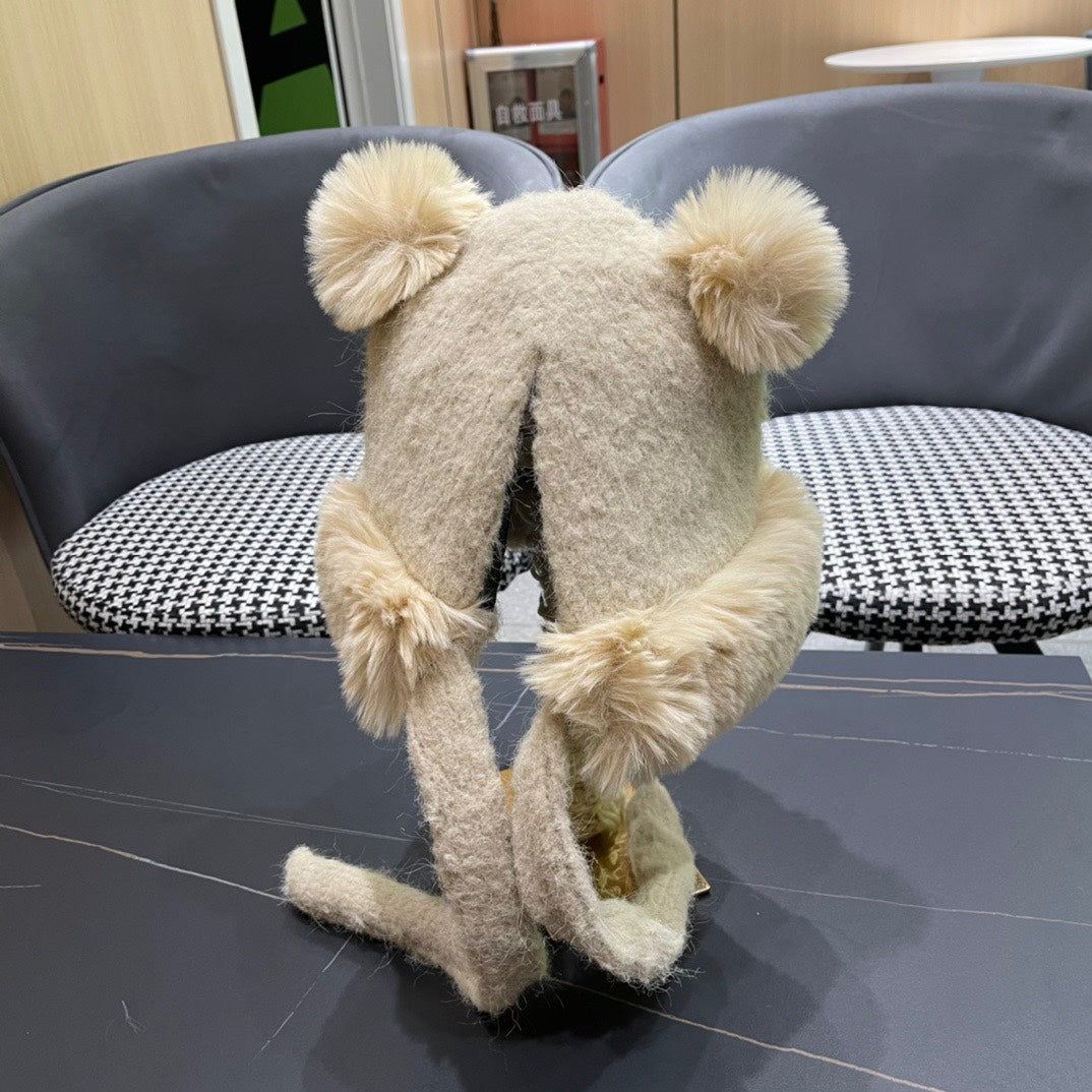 BEANIE HAT IN CREAM BEIGE WOOL AND LAMB FUR 427793