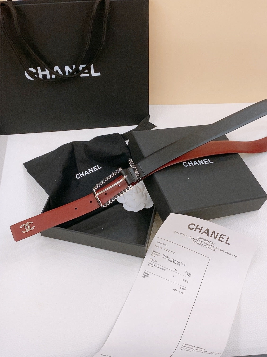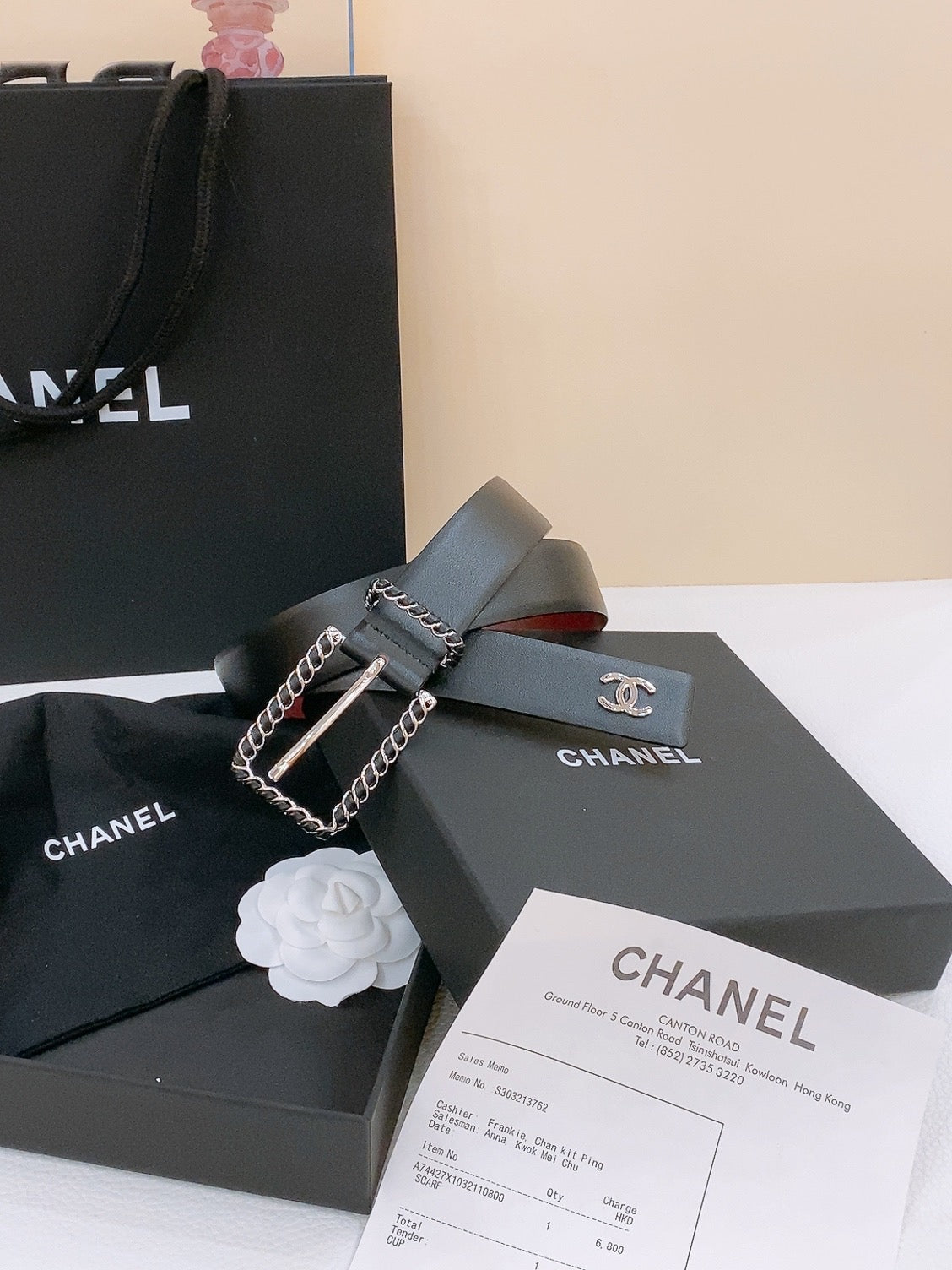 BELT 30MM IN BLACK AND RED CALFSKIN WITH INTERWOVEN SILVER CHAIN BUCKLE