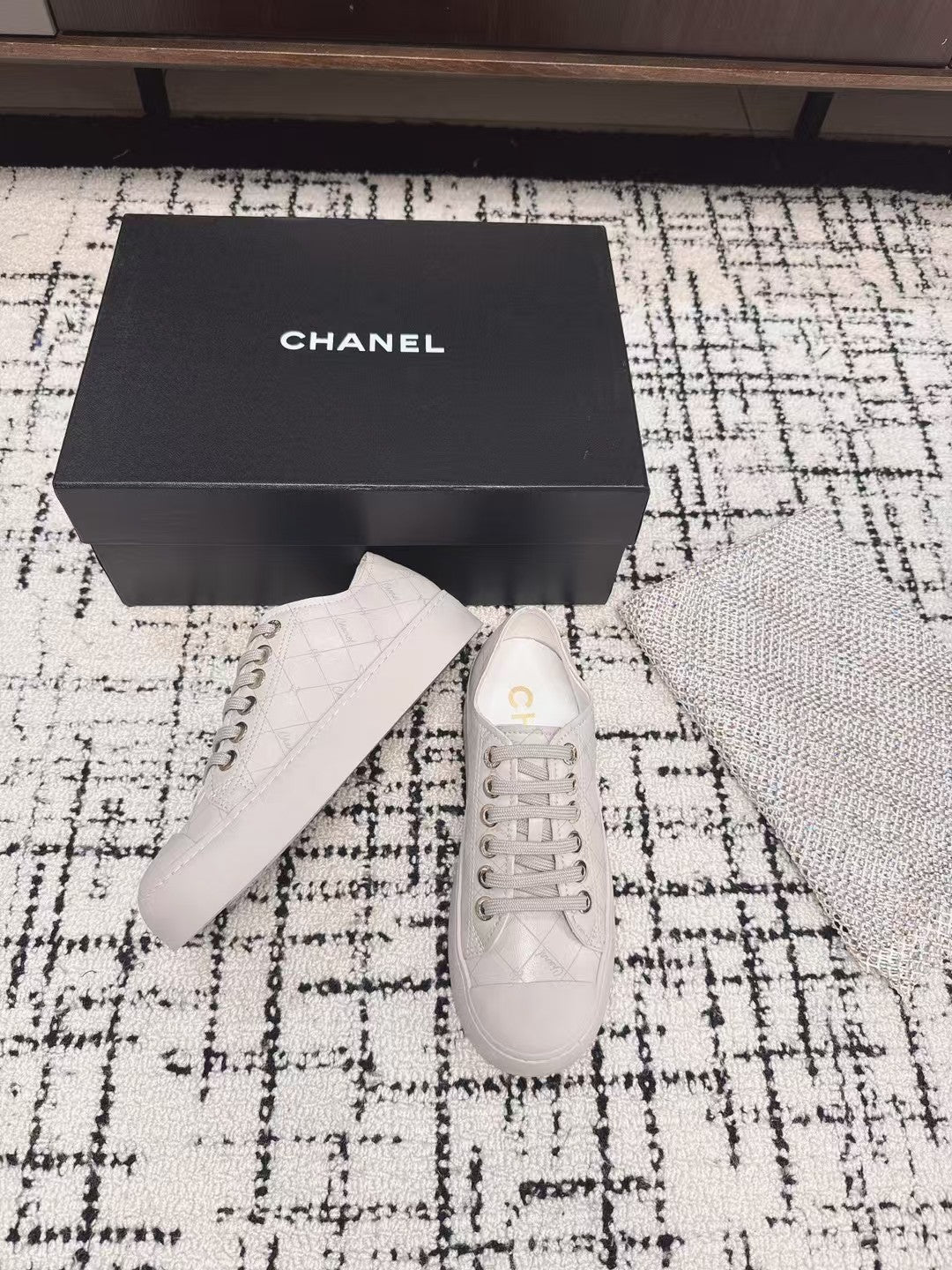 BISCUIT SNEAKERS IN PALE GRAY CALFSKIN