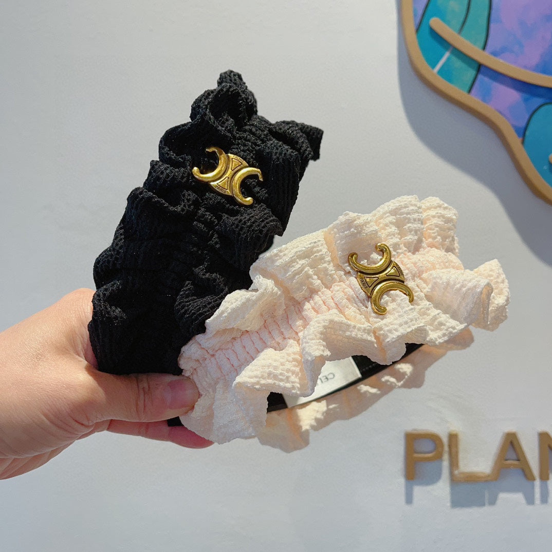 BLACK FABRIC WITH GOLD LOGO HAIRBAND 420627