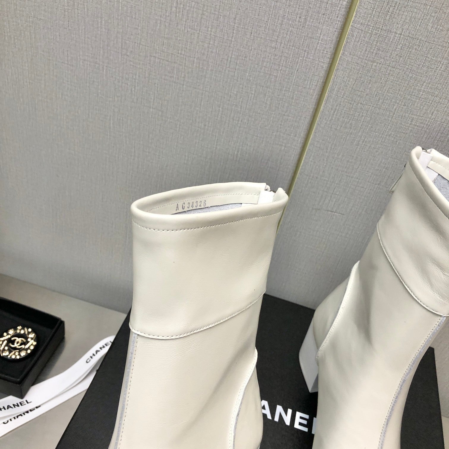 BLOCK HEEL ANKLE BOOTS IN WHITE CALFSKIN
