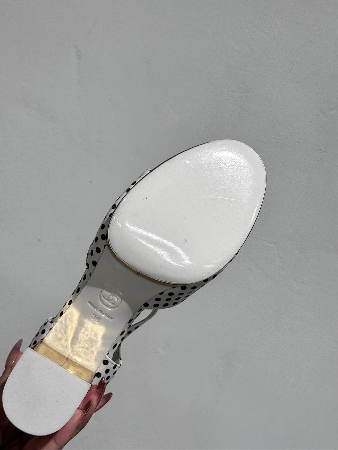 BLOCK HEEL SANDALS WHITE POLKA DOT SHEEPSKIN