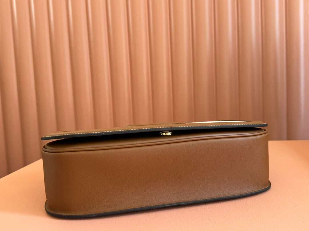 BLONDIE LARGE TOP HANDLE BAG 32 IN NATURAL COTTON LINEN CANVAS BROWN CALFSKIN