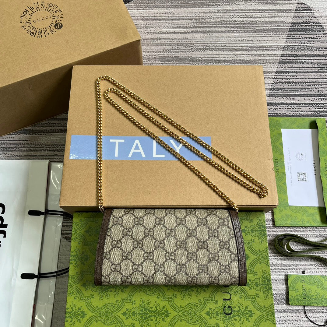 BLONDIE SHOULDER BAG 21 IN BEIGE MONOGRAM CANVAS AND DARK BROWN CALFSKIN TRIM GOLD HARDWARE
