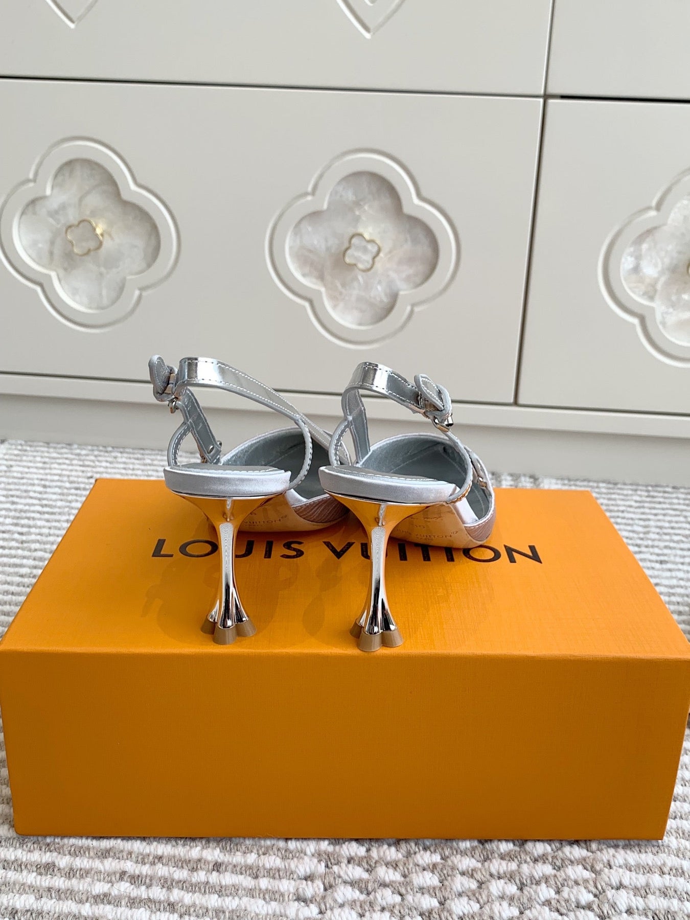 BLOSSOM SLINGBACKS 75 MM IN SILVER IMPORTED STRIPED SILK SATIN
