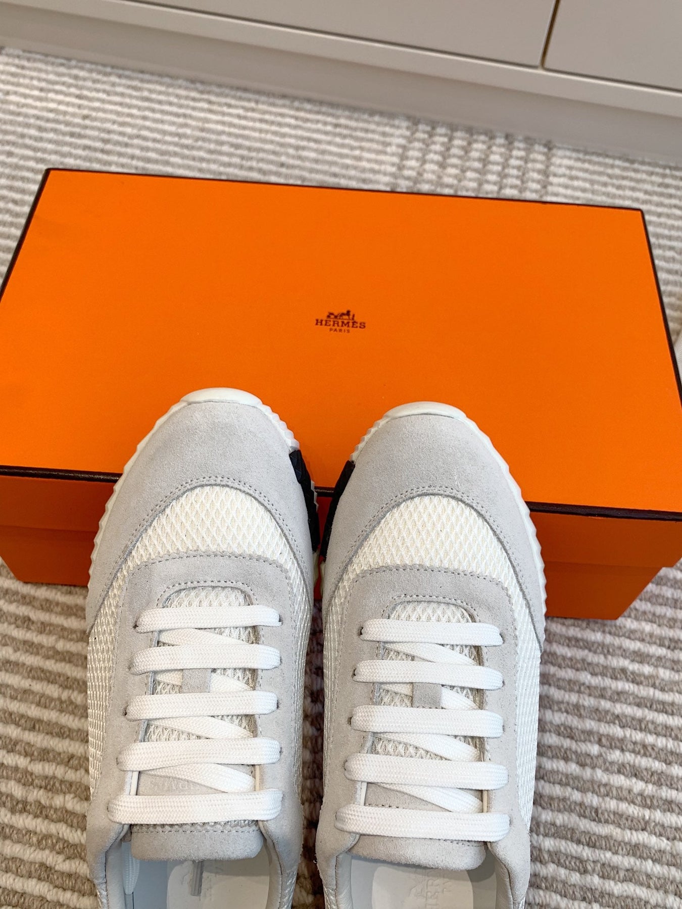 BOUNCING SNEAKER IN WHITE GRAPHIC MESH AND PASTEL GRAY SUEDE