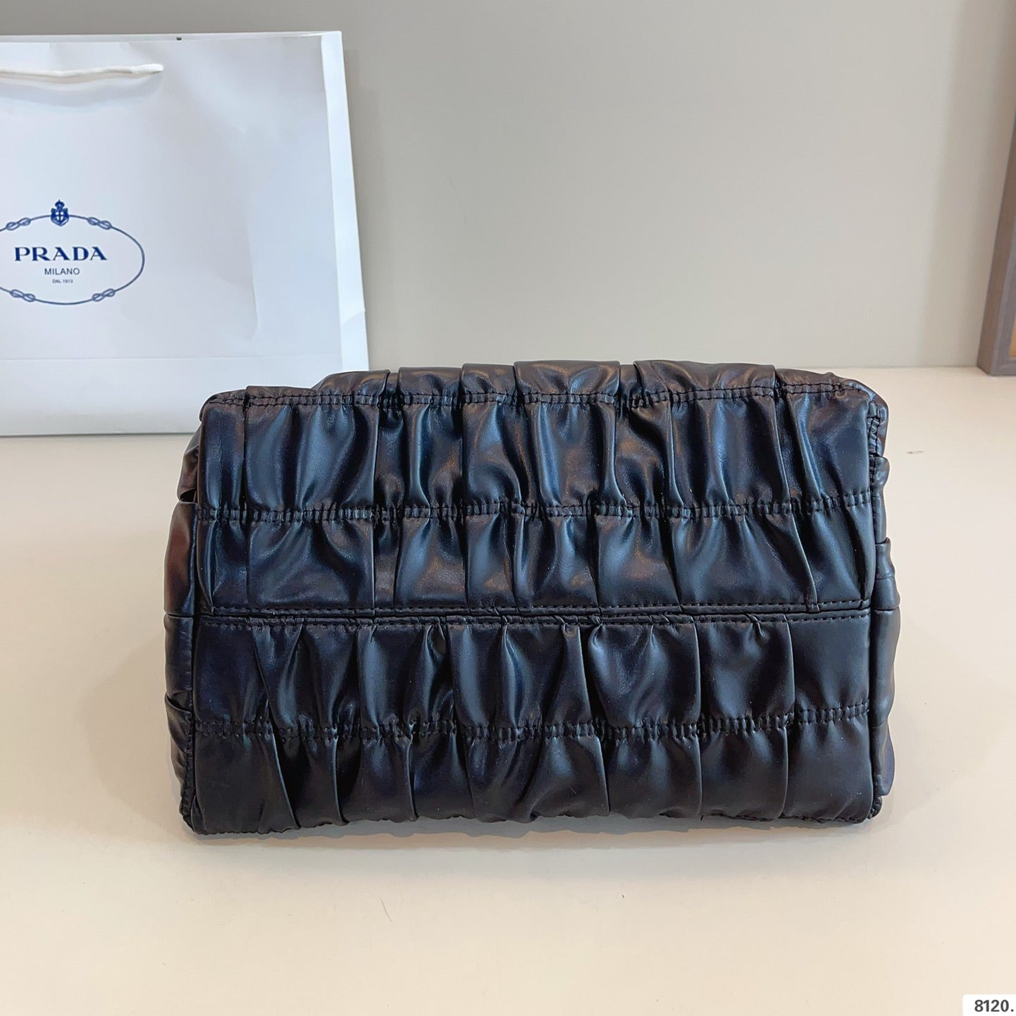 BOW DETAIL RUCHED TOP HANDLE BAG 29 IN BLACK SAFFIANO LEATHER
