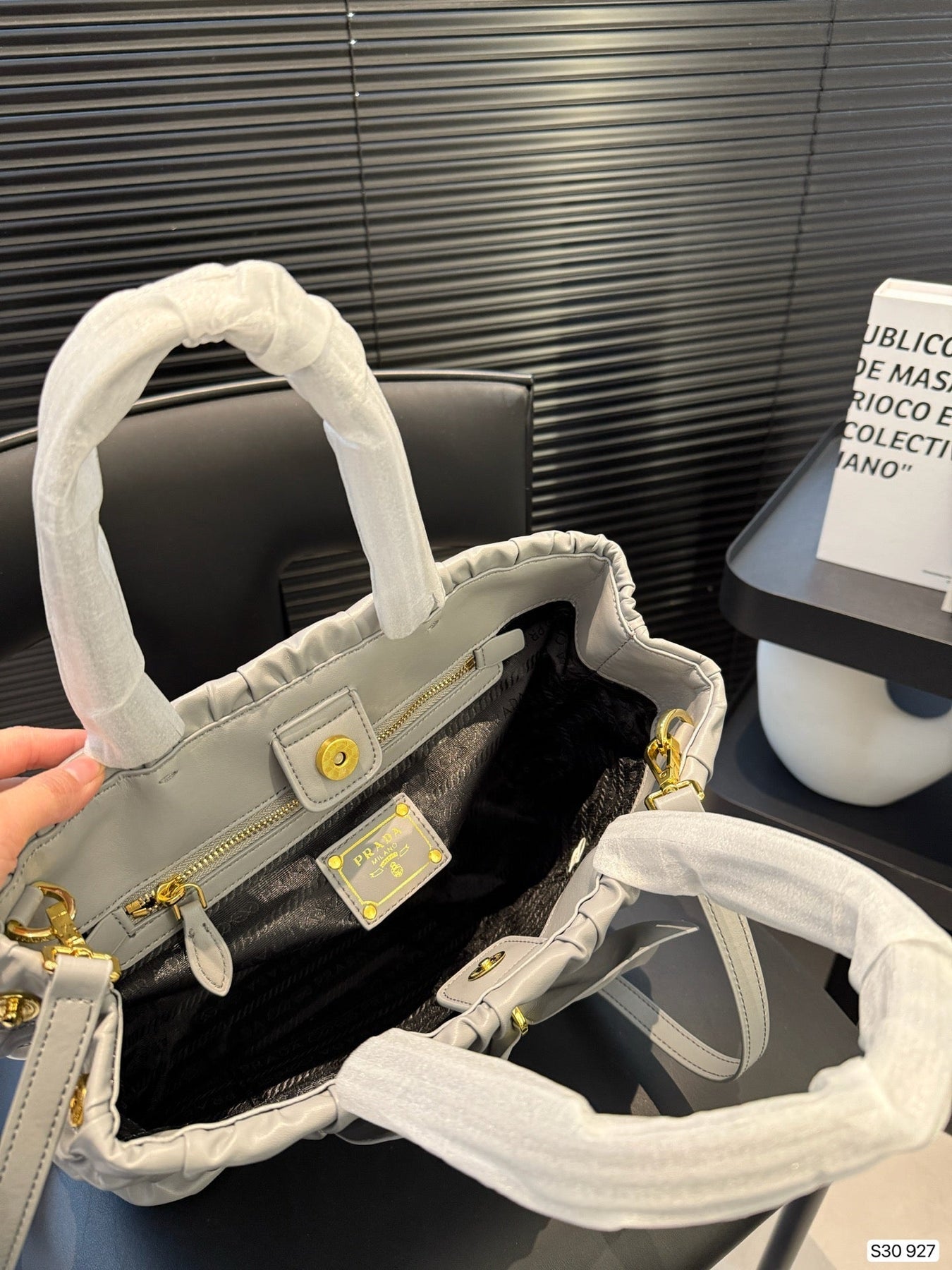BOW DETAIL RUCHED TOP HANDLE BAG 29 IN LIGHT GREY SAFFIANO LEATHER