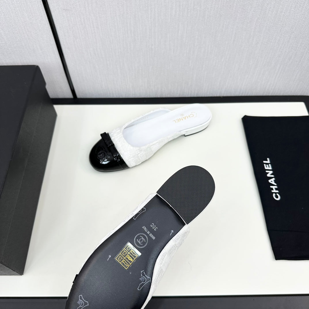 BOW MULE IN WHITE FABRIC AND BLACK CALFSKIN