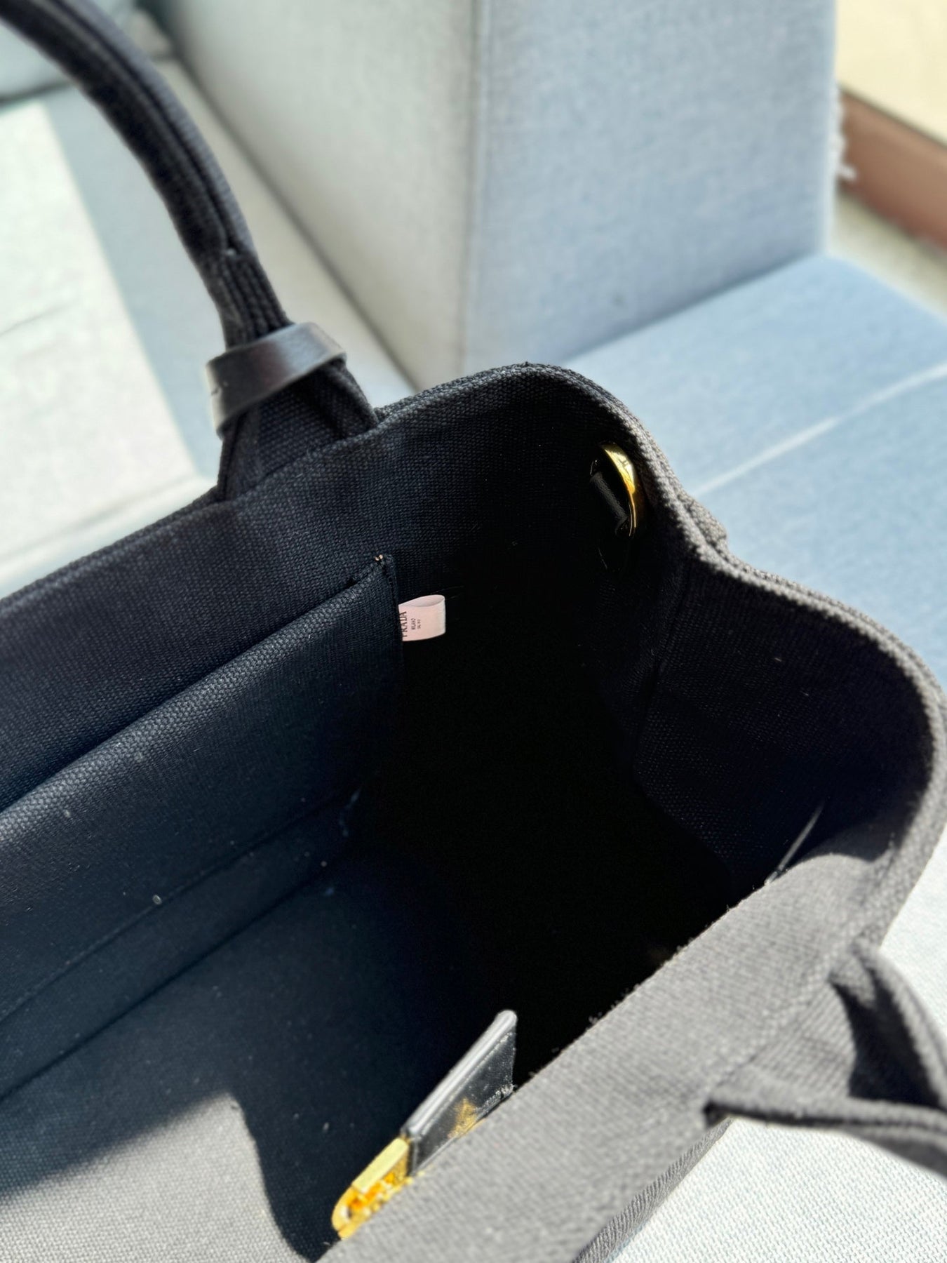 CANAPA TOTE BAG 26 IN BLACK LINEN BLEND EMBROIDED LOGO