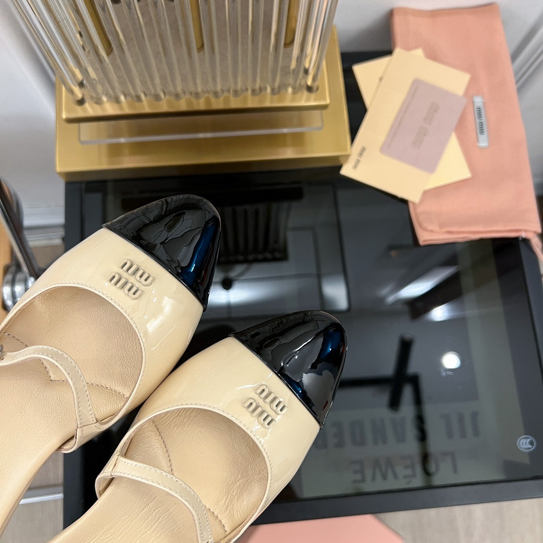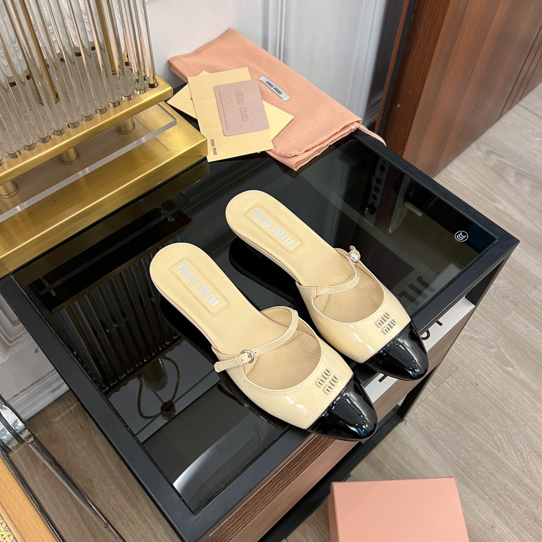 Cap Toe Mules Bright Cream Color Sheepskin
