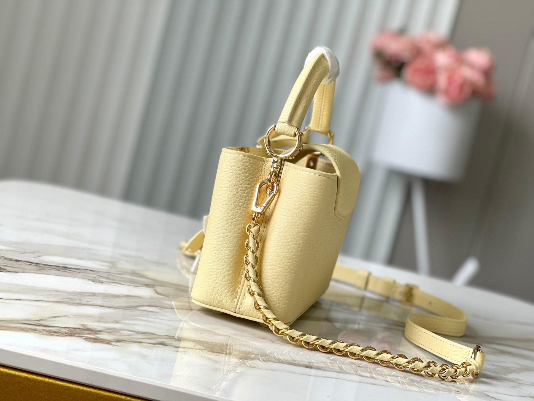 CAPUCINES EAST-WEST MINI 22 IN BANANA YELLOW TAURILLON GOLD HARDWARE