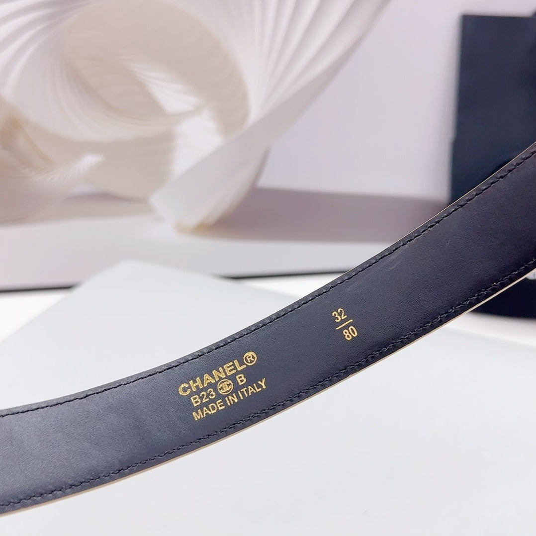 CC 30MM BELT IN CAMEL BROWN CALFSKIN GOLD HARDWARE ATTACH PEARLS