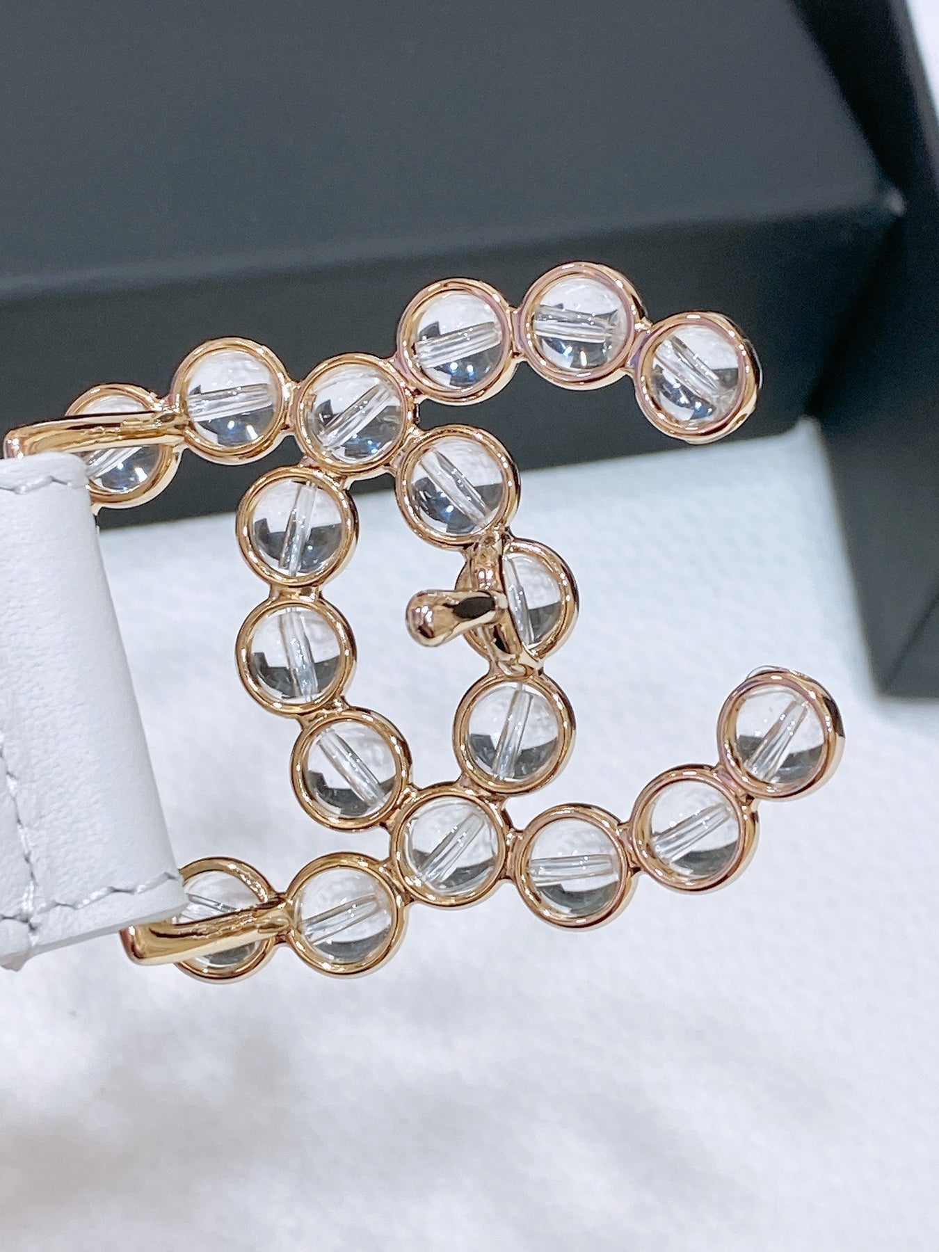 CC BELT 30 MM IN WHITE CALFSKIN PEARL LOGO WITH GOLD HARDWARE