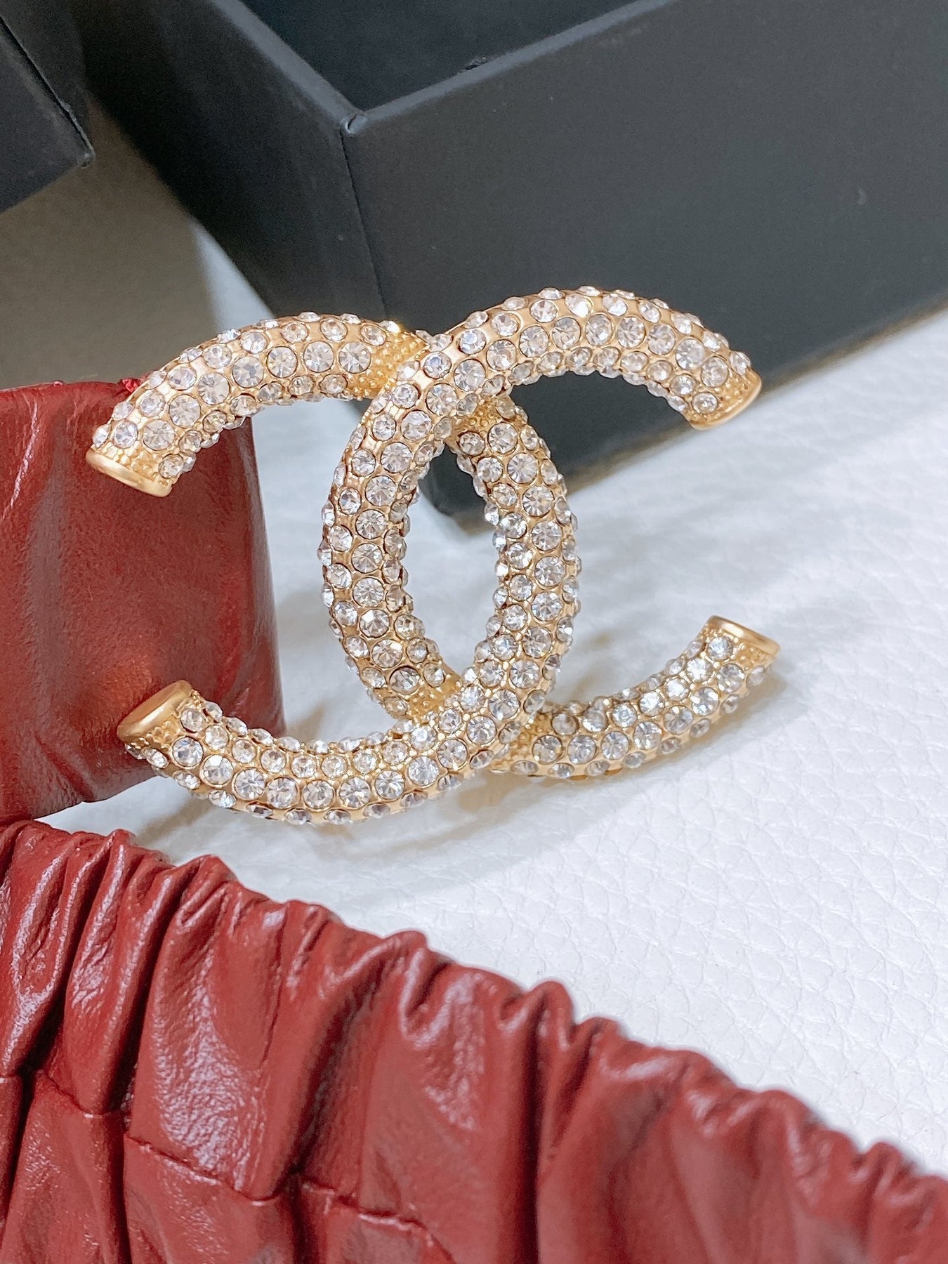 CC ELASTIC BELT 30MM IN WINE RED CALFSKIN GOLD HARDWARE WITH RHINSTONES