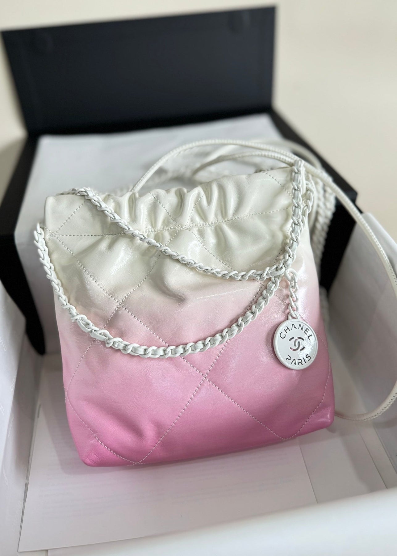 CC HOBO MINI 20CM PINK WHITE LAMBSKIN