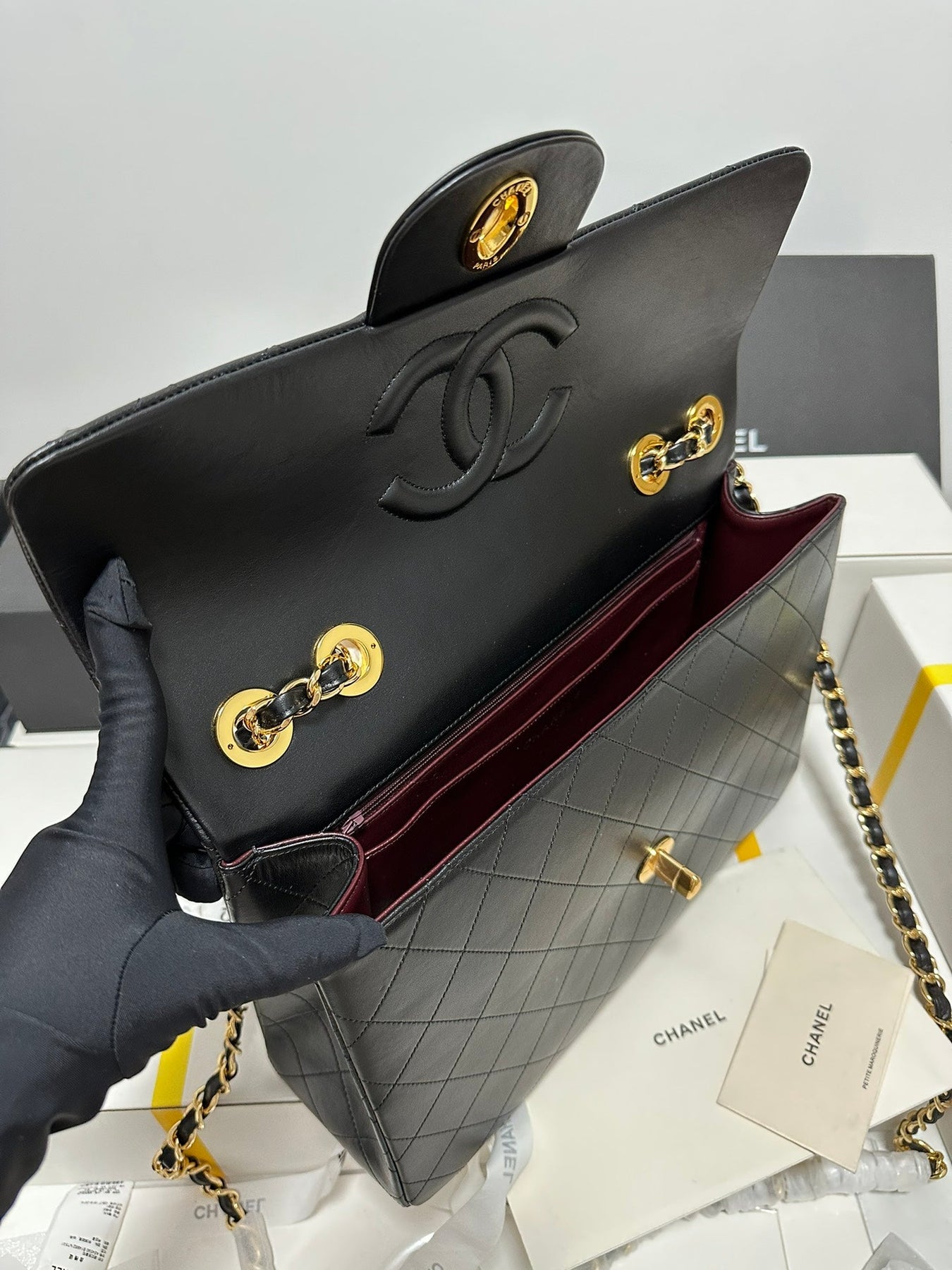 CC MAXI FLAP BAG 34 IN BLACK CALFSKIN