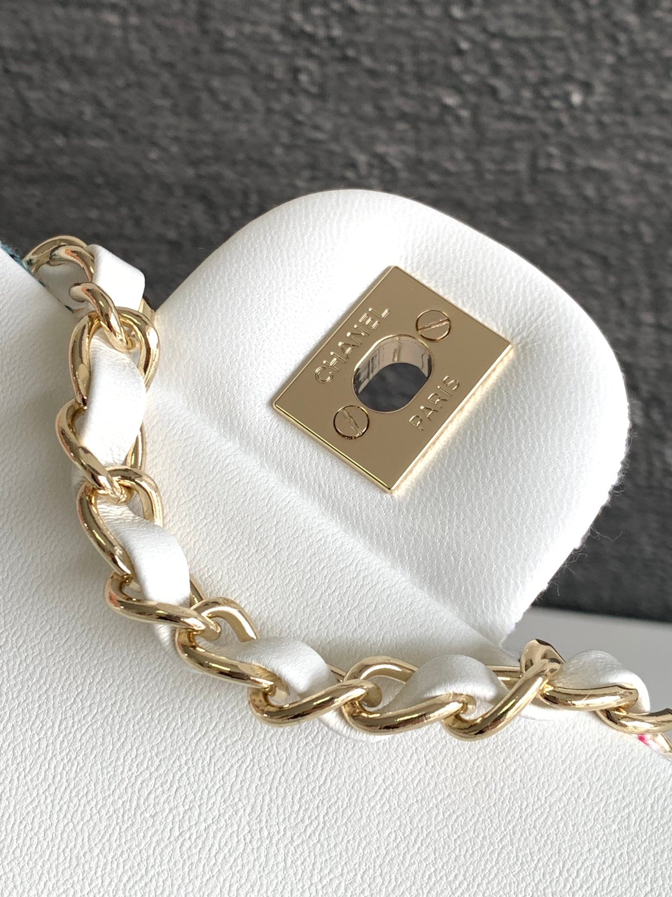 CC MEDIUM 20 FLAP BAG IN WHITE WOOL TWEED