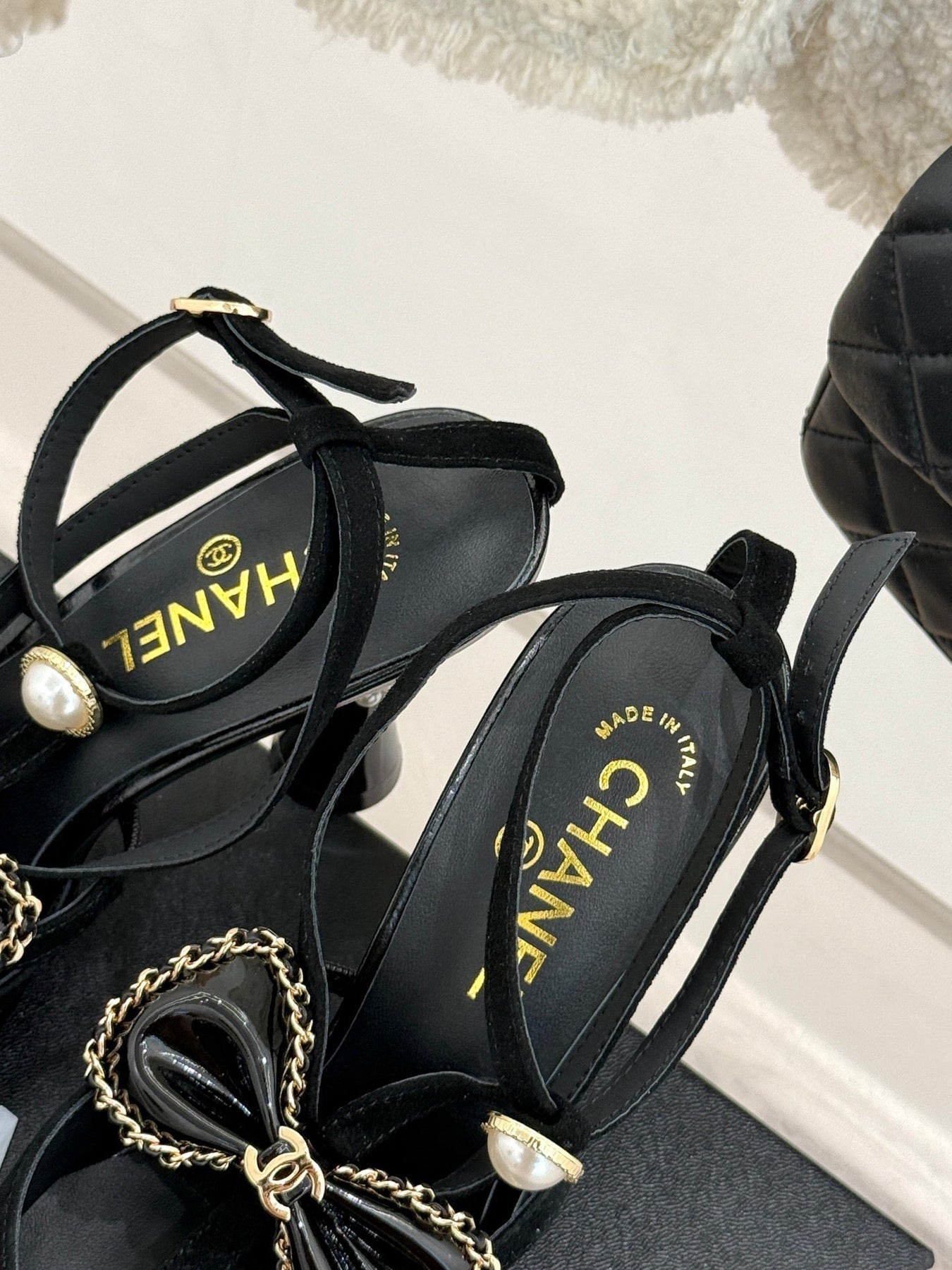 CHAIN BOW HIGH HEEL 8 CM SLINGBACKS IN BLACK SUEDE
