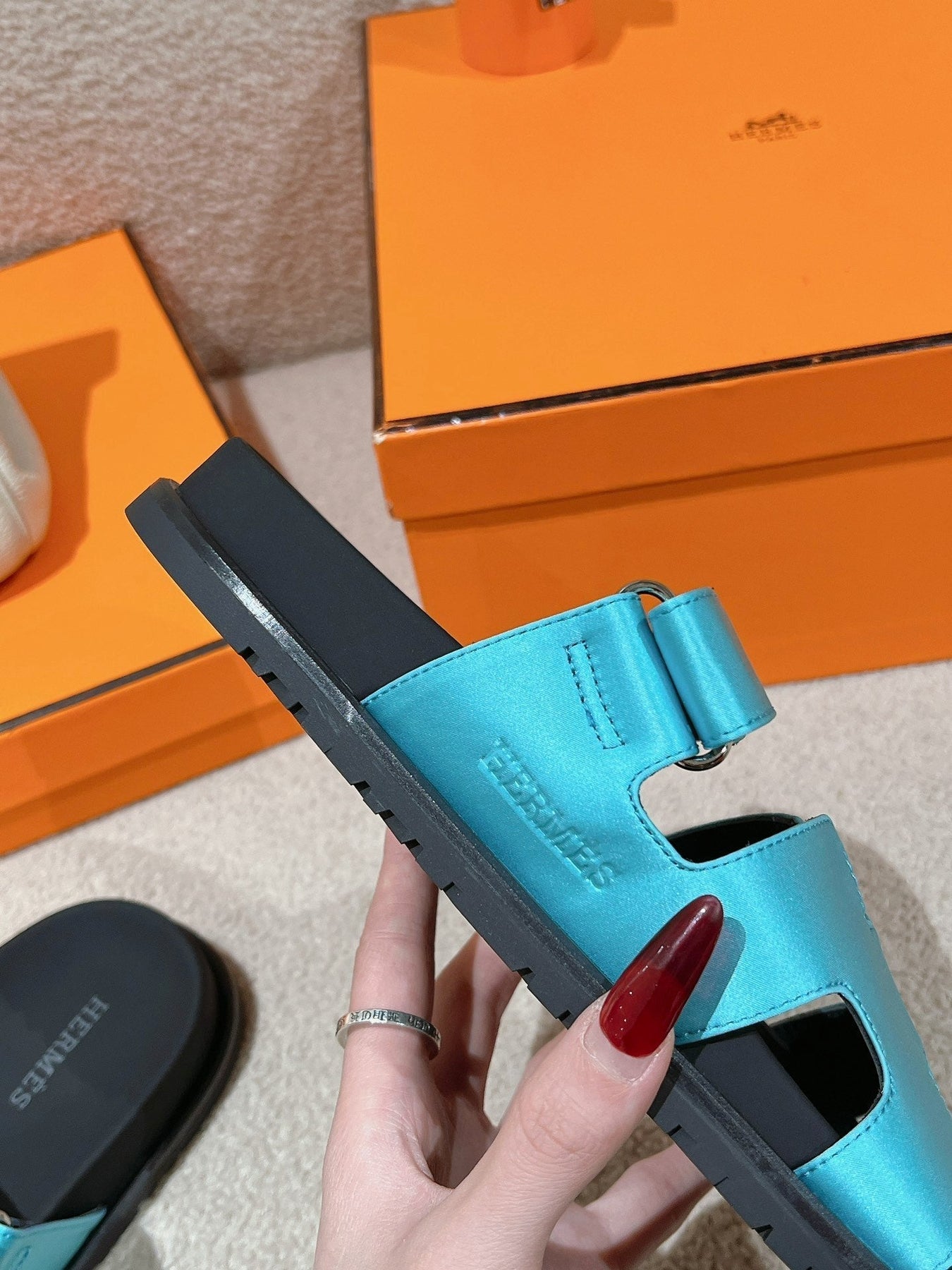 CHYPRE SANDAL BLACK MIX SKY CALFSKIN