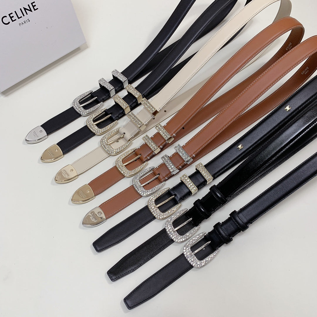 CL 25 MM MARCO BELT WITH STRASS IN BRONZE BROWN CALFSKIN GOLD HARDWARE