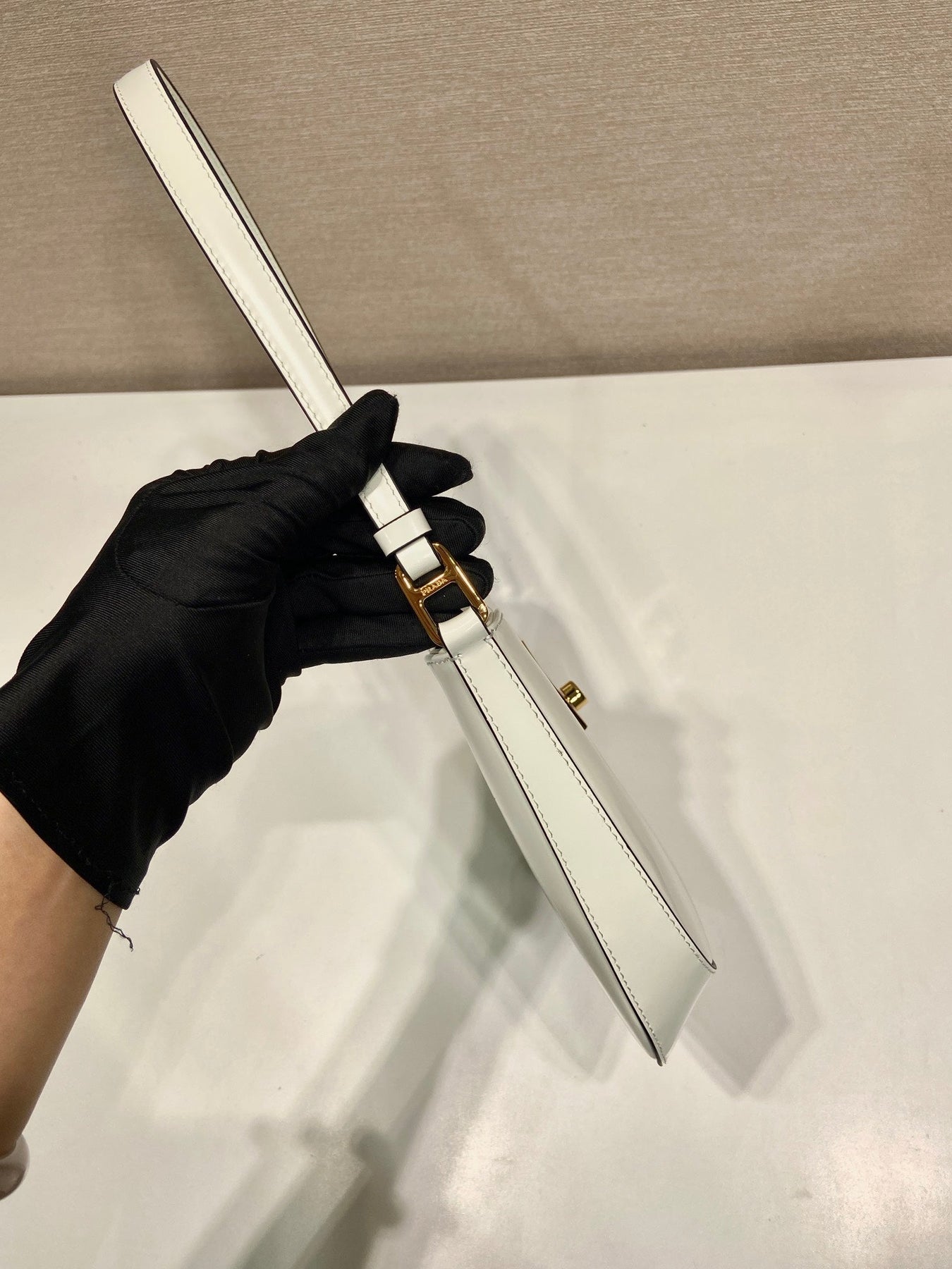 CLEO SHOULDER BAG 22 IN WHITE BRUSHED LAMBSKIN WITH CLASP CLOSURE