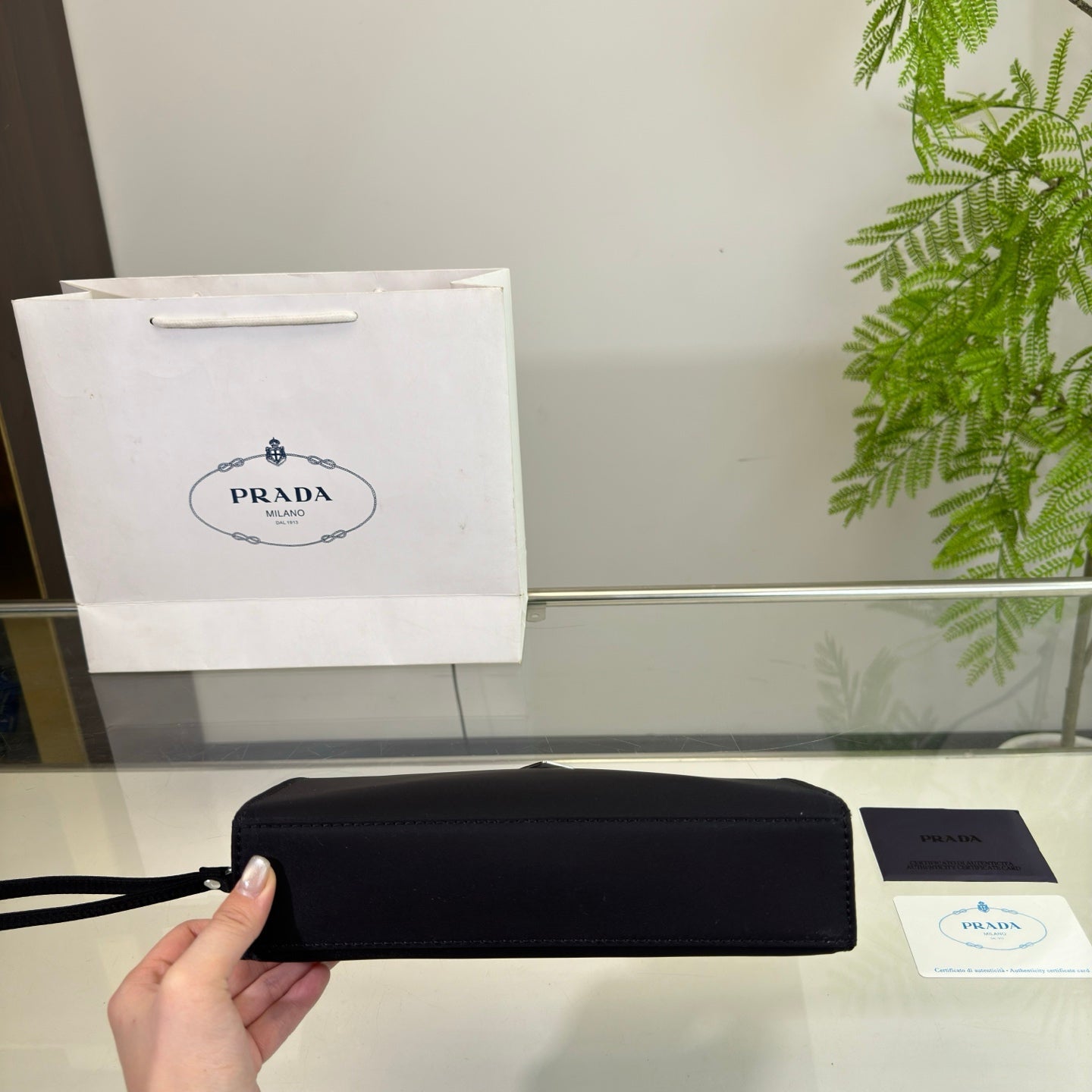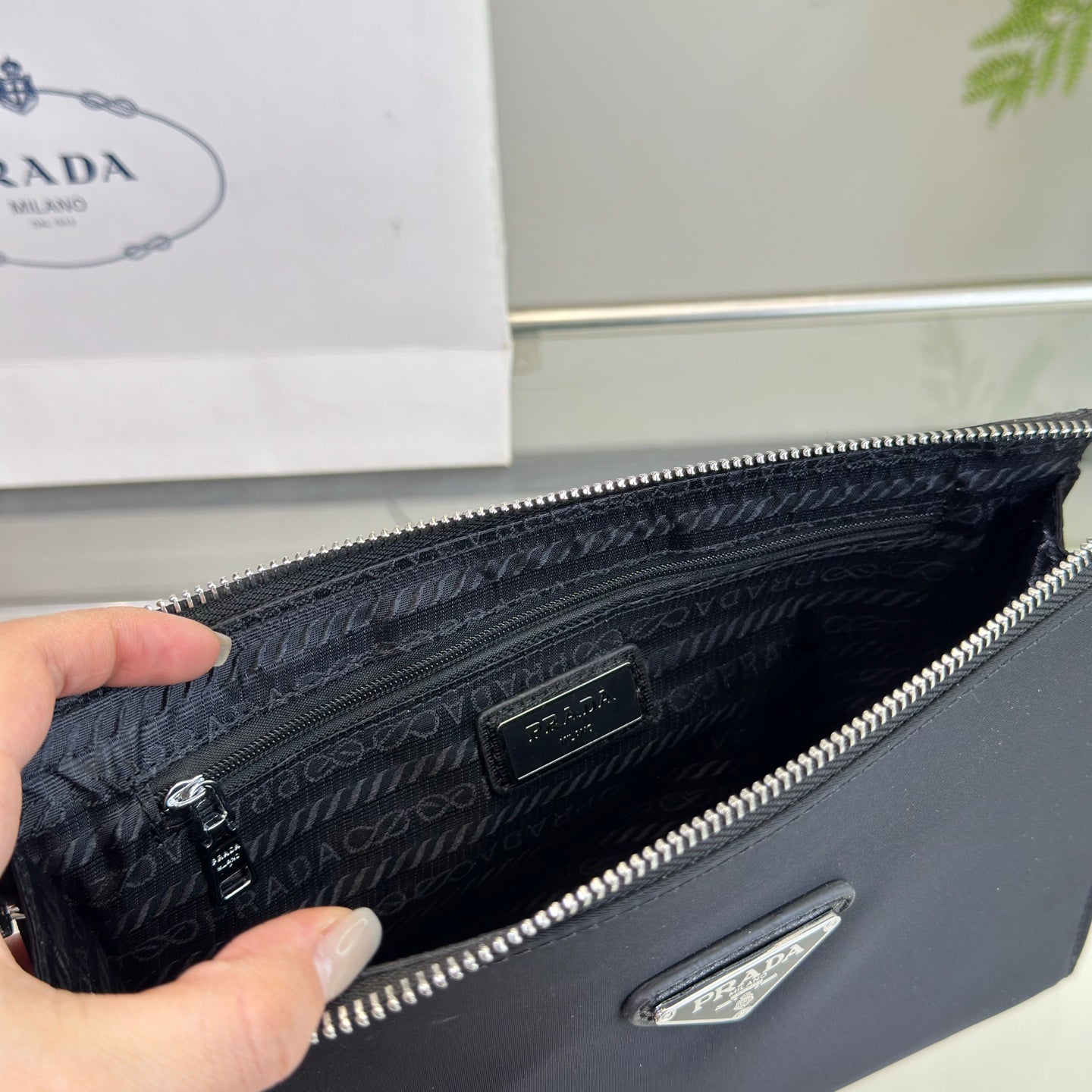 CLUTCH 25 IN BLACK RE-NYLON TRIANGLE LOGO