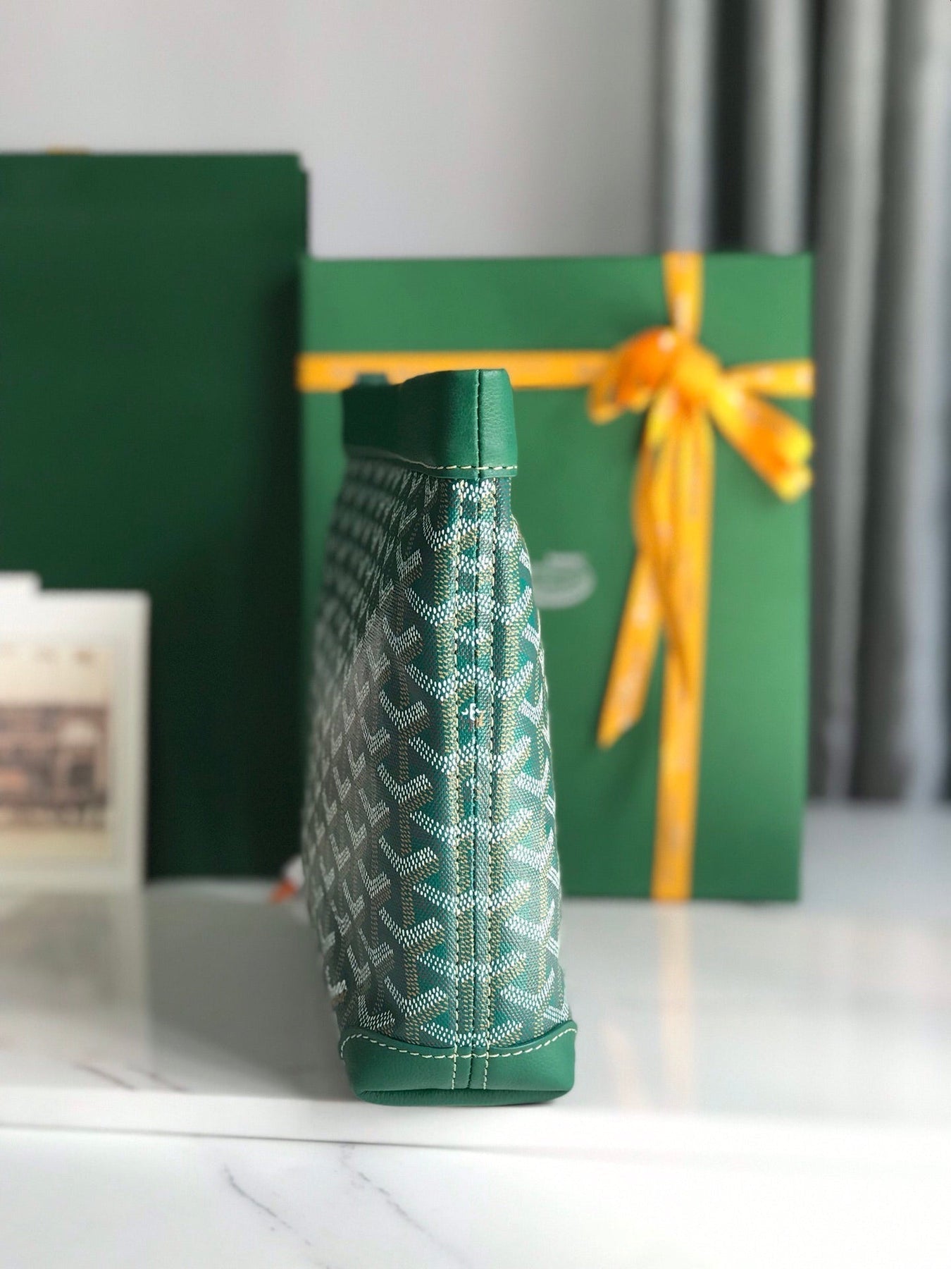CONTI POUCH 24 IN GREEN LAMBSKIN AND GOYARDINE CANVAS