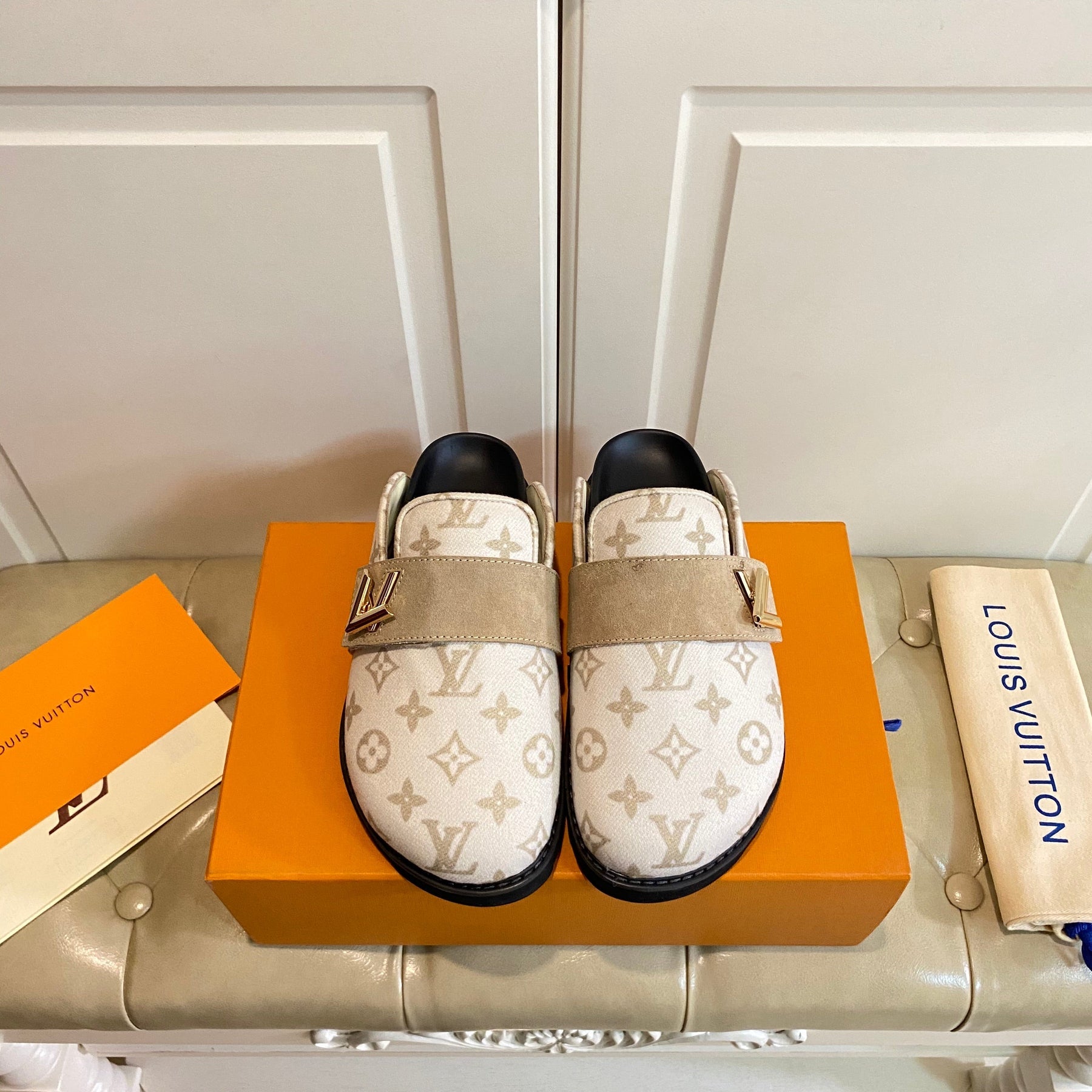 COSY FLAT COMFORT CLOG IN BEIGE MONOGRAM FABRIC