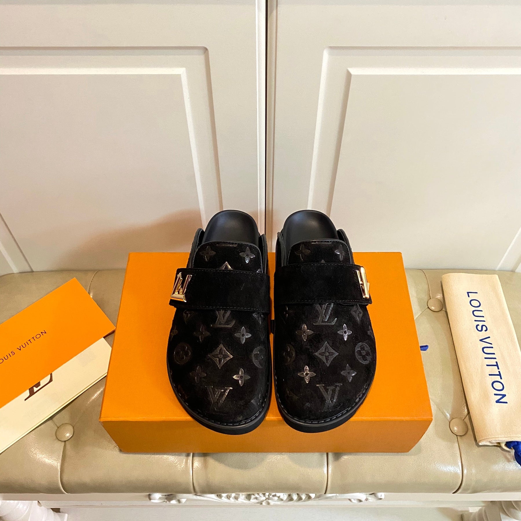 COSY FLAT COMFORT CLOG IN BLACK EMBOSSED SUEDE