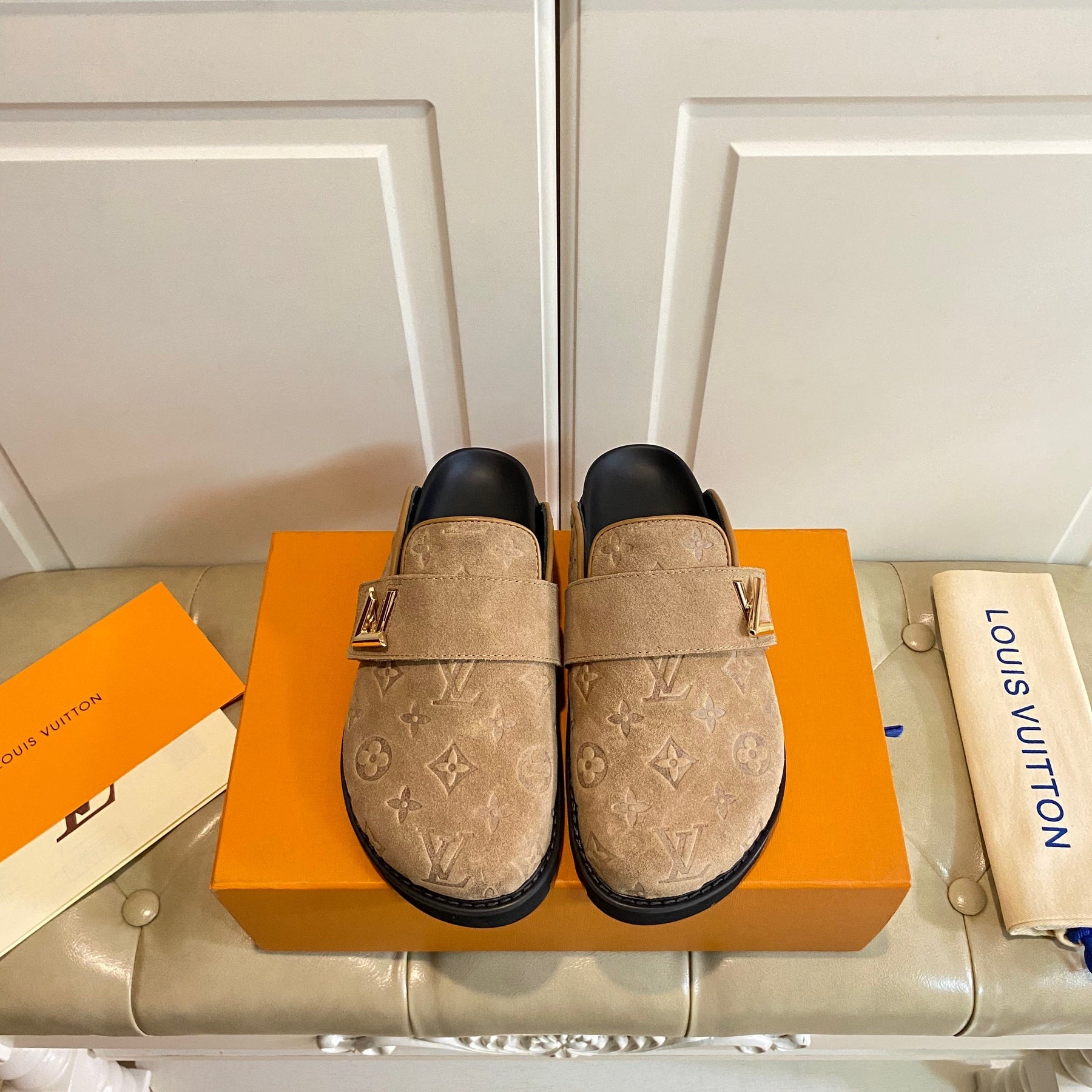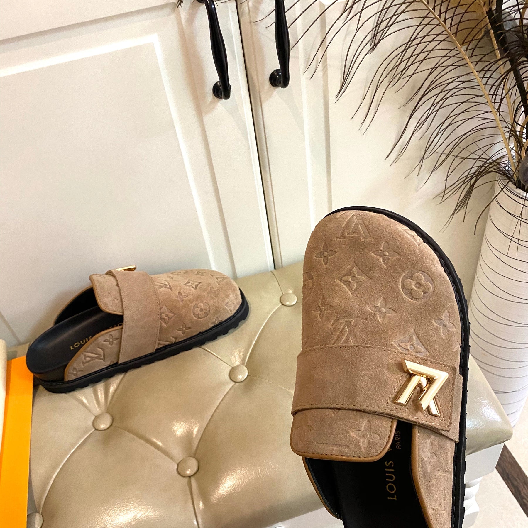 COSY FLAT COMFORT CLOG IN CIDER BROWN EMBOSSED SUEDE
