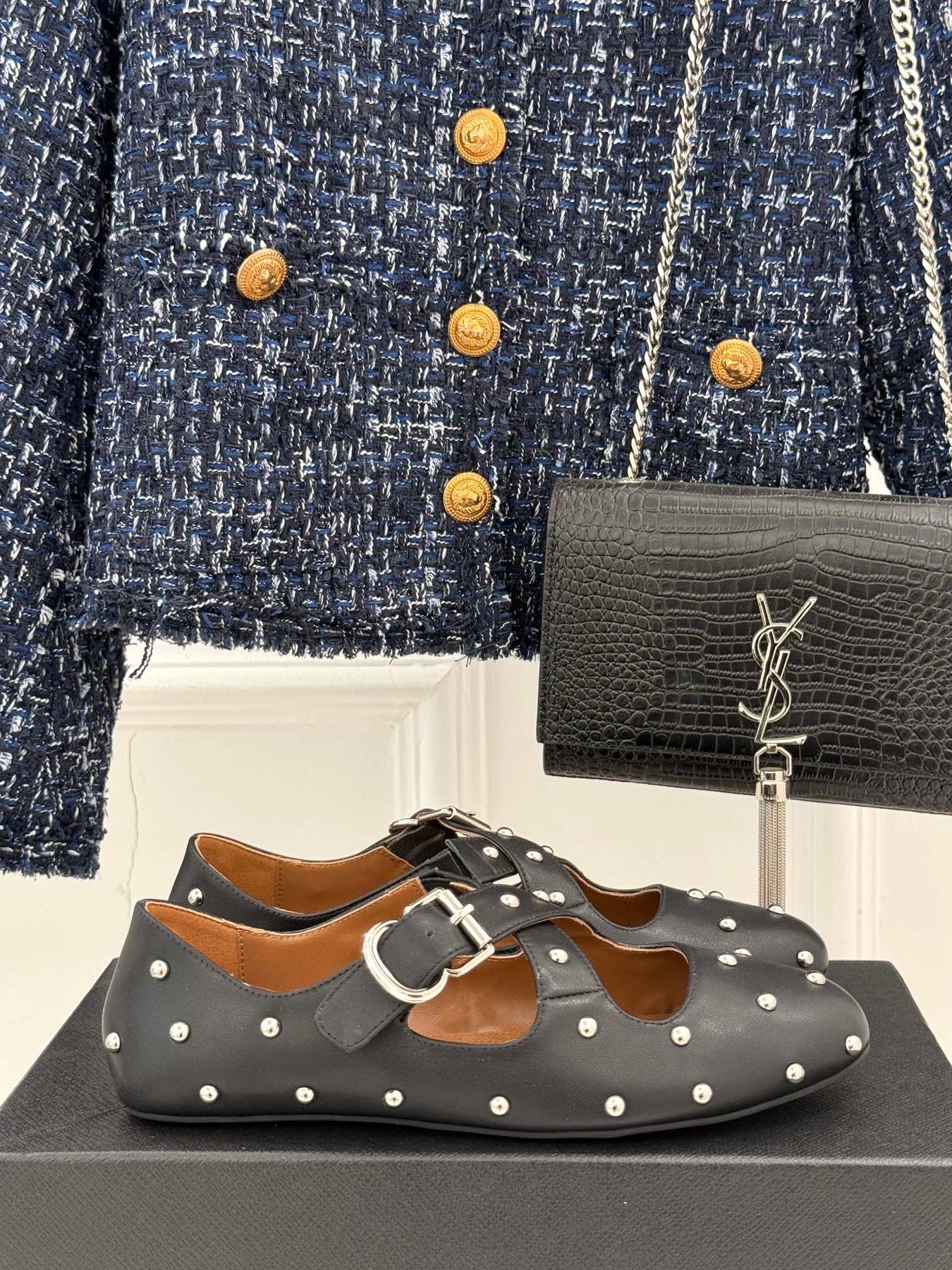 CROSSED STRAP BALLET FLATS IN BLACK CALFSKIN