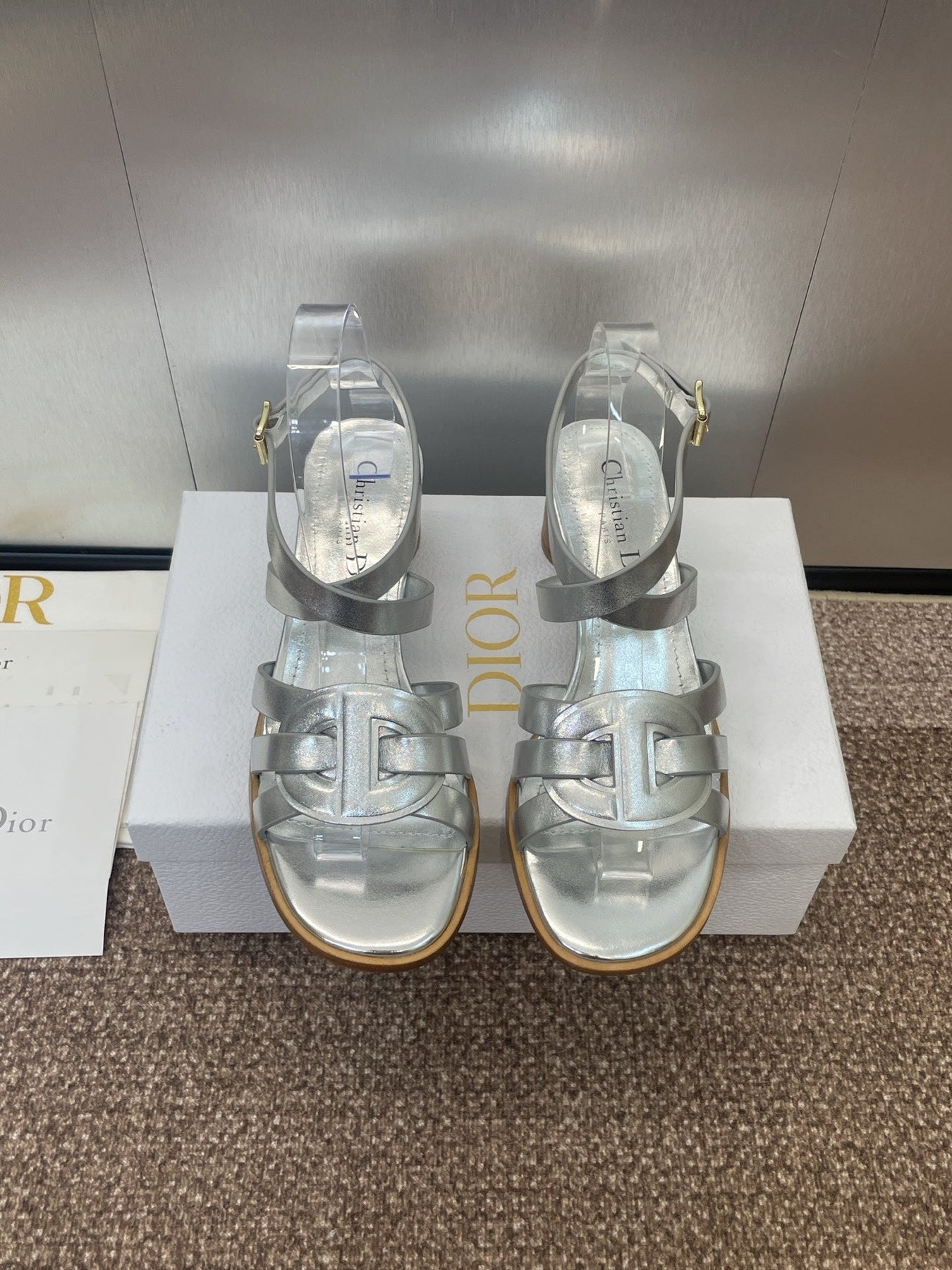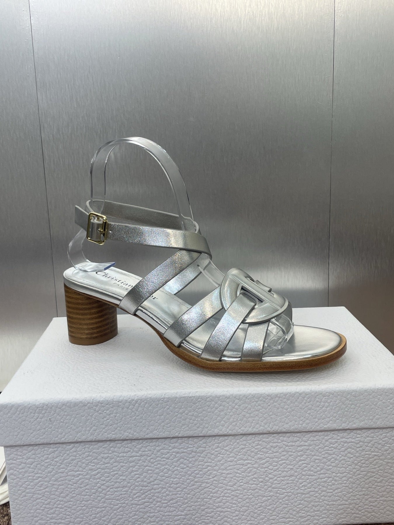 D-CLUB HIGH HEEL SLIDE 25S 55MM IN SILVER GLOSSY CALFSKIN