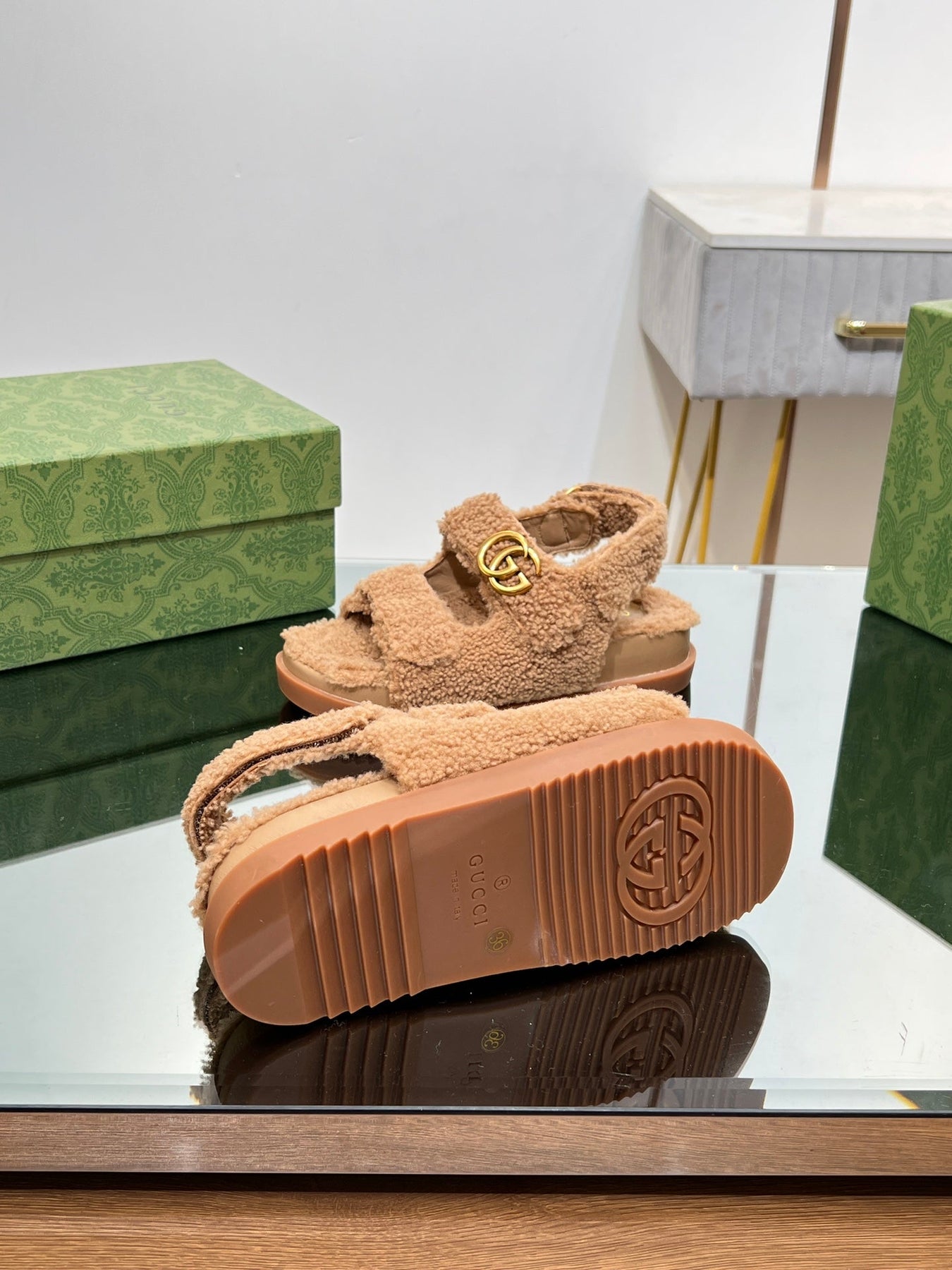 DAD SANDALS IN CIDER BROWN FLEECE WITH GOLD HARDWARE