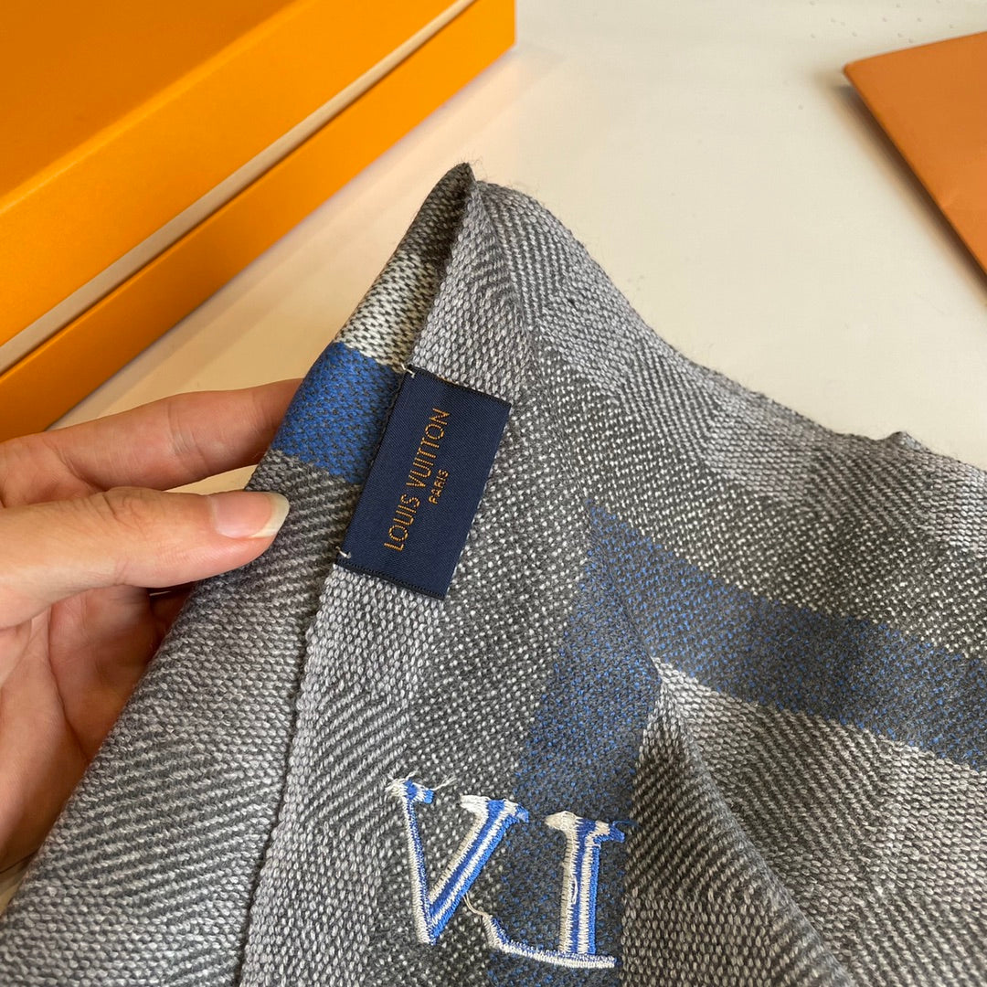 DAMIER SCARF 190 CM IN KHAKI BROWN CASHMERE 391147